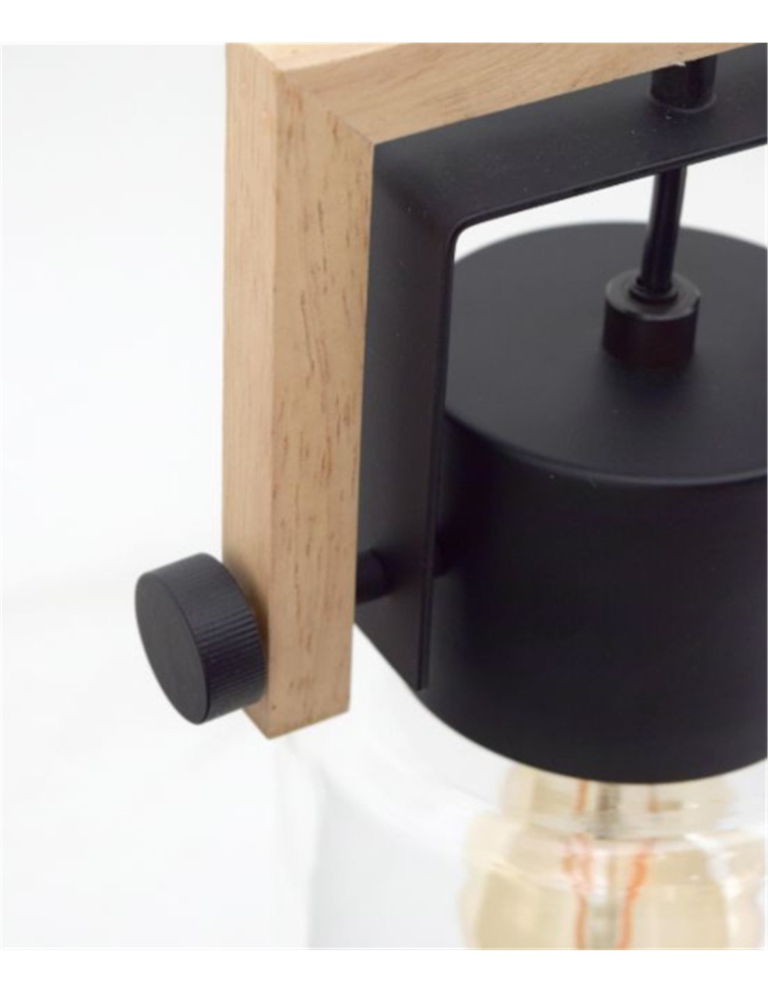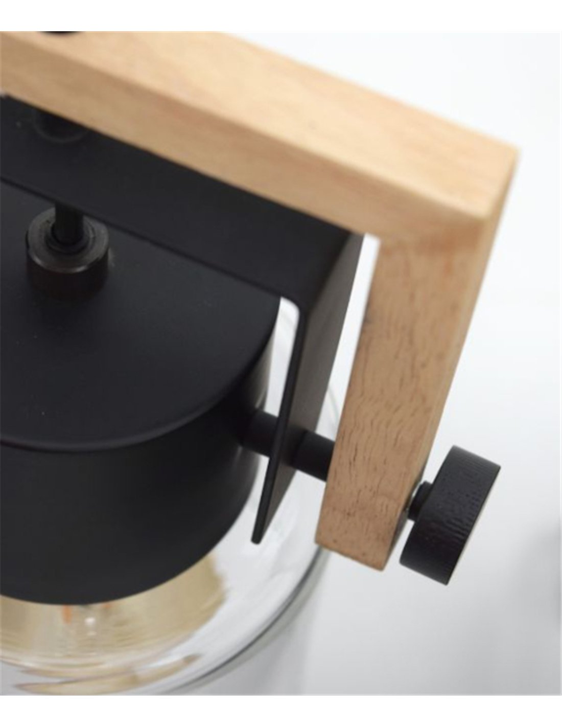Se trata de una lámpara compuesta de madera natural con una tulipa cilíndrica de cristal transparente, lo que crea una estética de líneas limpias que se siente cómoda tanto en un hogar de aire nórdico como en ambientes contemporáneos o rústicos modernos.