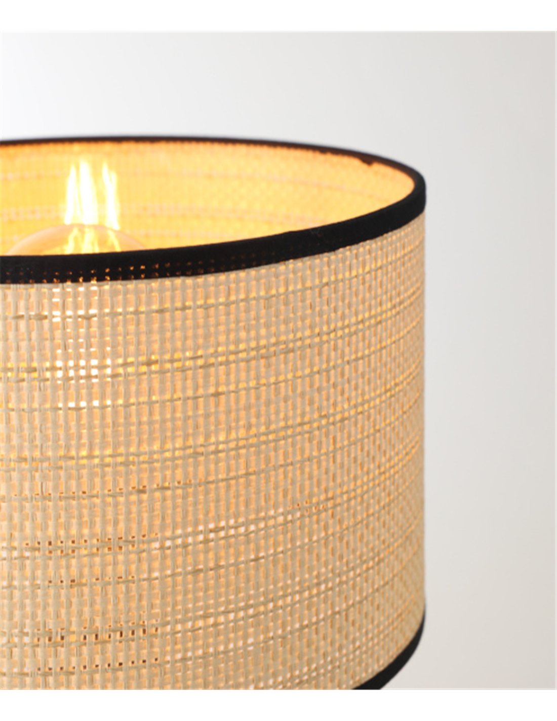 Para que encaje aún mejor con tu decoración, se ofrece en dos acabados diferentes: la opción en negro es ideal si buscas un contraste más marcado, mientras que la versión en crudo ofrece un resultado visualmente más suave y sereno. Independientemente del color que elijas, su pantalla de fibras naturales se encargará de tamizar la luz creando una atmósfera cálida que convertirá cualquier estancia en un refugio acogedor.