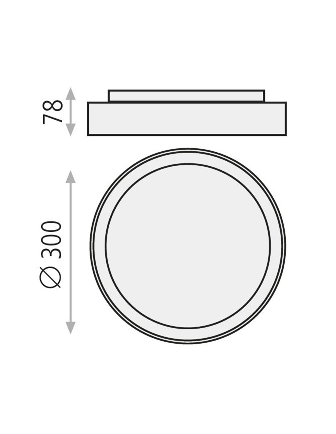 Tilo es un aplique para uso ecterior que posee un aspecto sencillo y discreto. Cuenta con protección IP65, lo que significa que está completamente protegido contra la entrada de polvo e impidiendo la entrada de agua desde cualquier ángulo, y presenta medidas de 7.8 cm de alto y 30 cm de diámetro.
