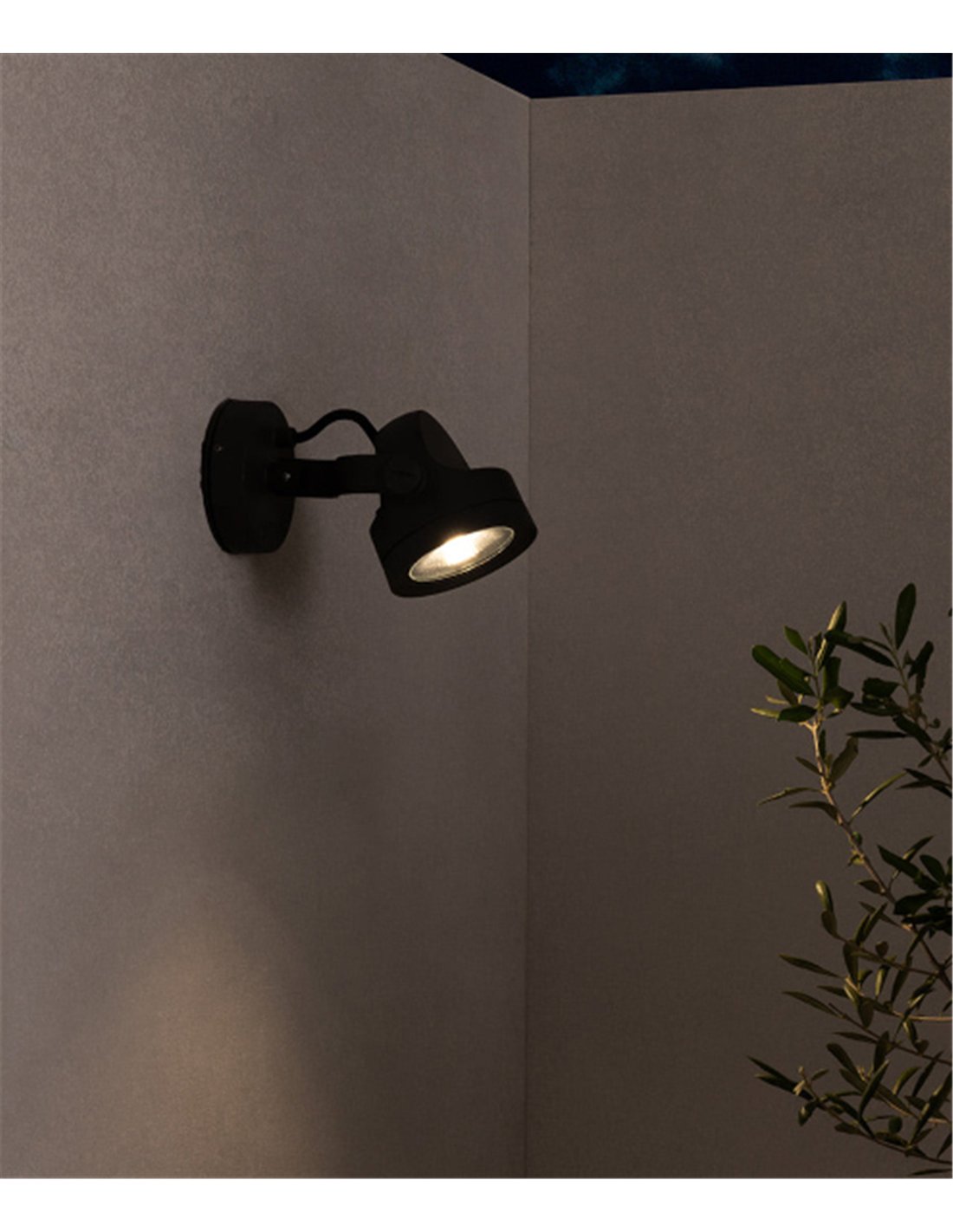 Proyector LED de aluminio inyectado que puede ser orientado 90° desde el plano horizontal. Su estética mezcla lo decorativo y lo técnico y es ideal para iluminación exterior, realzando entradas en jardines y terrazas. Su IP 65 le otorga una alta protección contra la lluvia y los cuerpos sólidos. La fuente de iluminación de este proyector minimalista es COB LED 15W (la bombilla está incluida) y su temperatura de color es de 3000K.