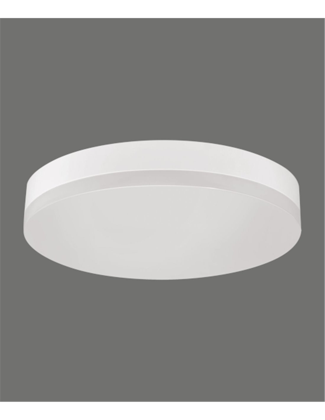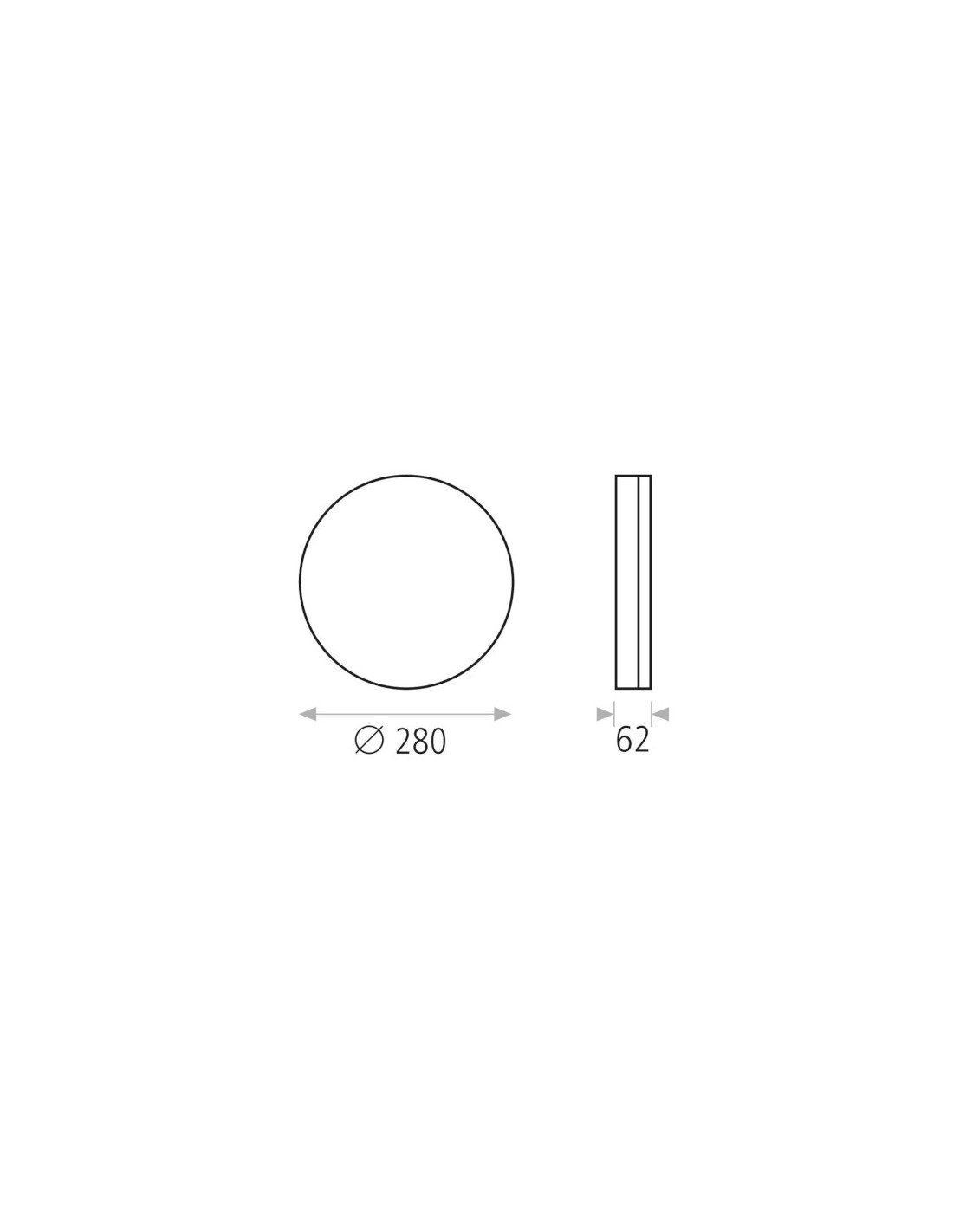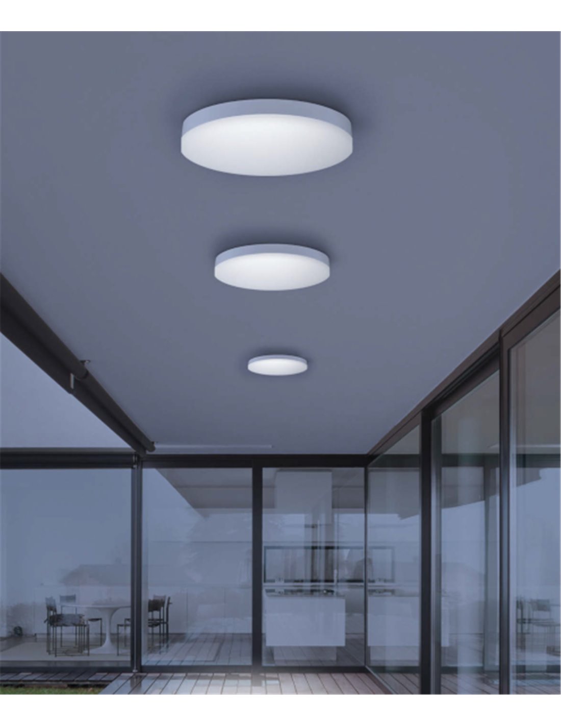 With its elegant white acrylic design, the fixture measures 28 cm in diameter and 6.2 cm in height, making it a discreet option for any outdoor setting such as entrances, patios, or corridors. Its IP54 rating ensures protection against dust and water splashes, guaranteeing durability and reliable performance in all weather conditions.