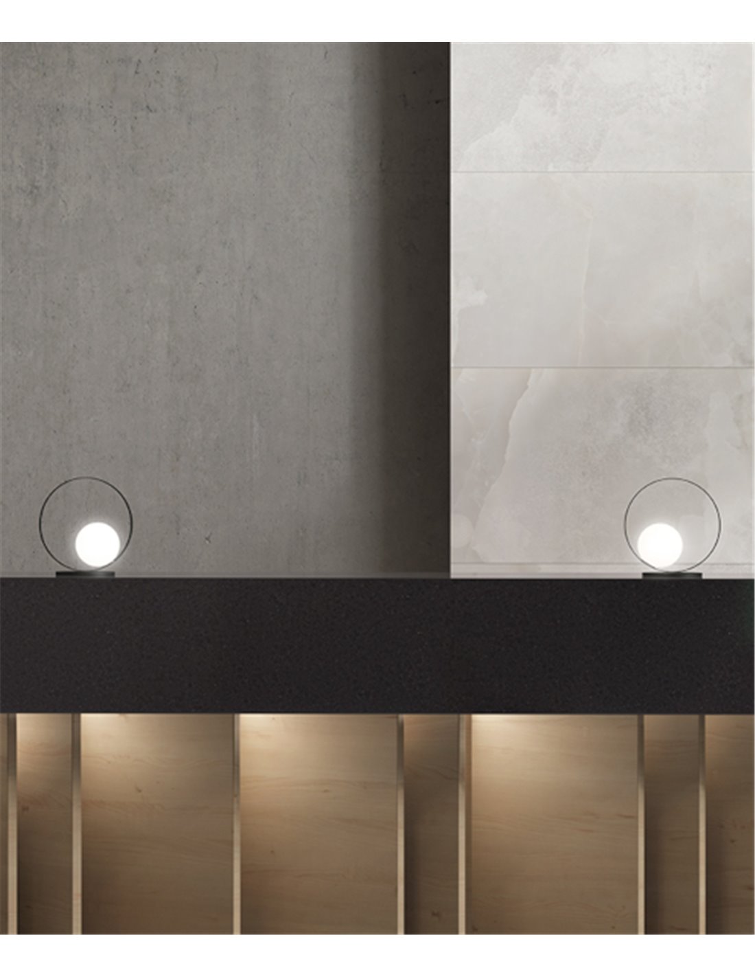 The Halo table lamp stands out for its elegant and minimalist design. Its most striking feature is the glass globe shade, which not only serves as a decorative element but also diffuses a warm and soft ambient light, creating a cozy atmosphere in any space.