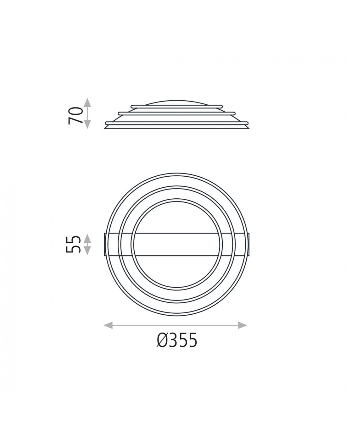 This attractive wall lamp stands out without overwhelming the space, thanks to its dimensions of 35.5 cm in total diameter and 7 cm in total width, with each ring measuring 5.5 cm in width.