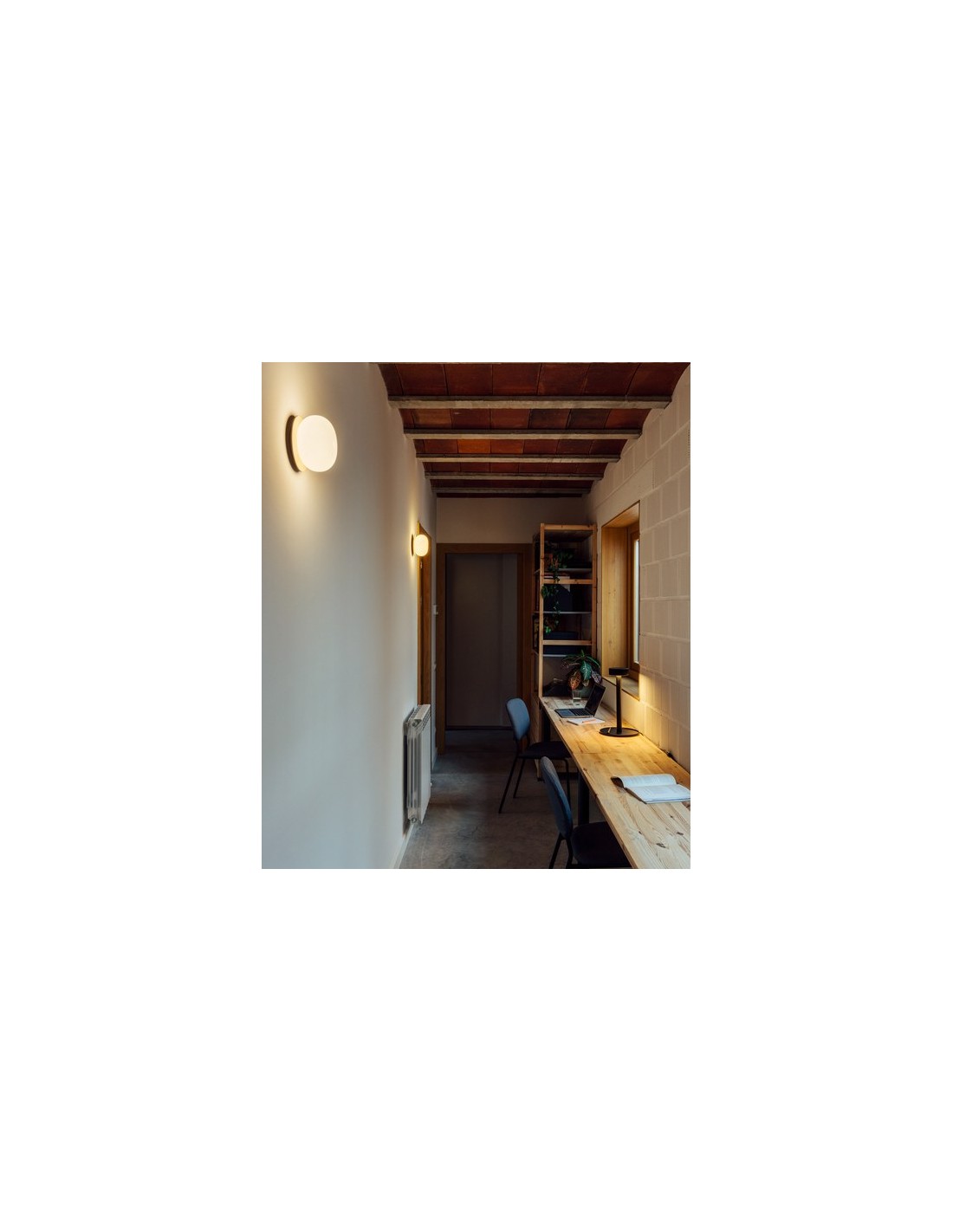 Knock is a timeless wall light that blends perfectly with any environment and furniture. Its geometric shapes illuminate the room in a pleasant way.