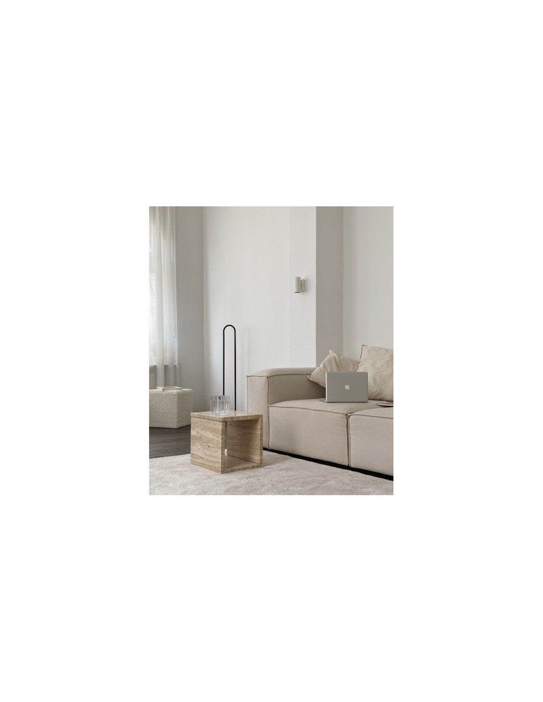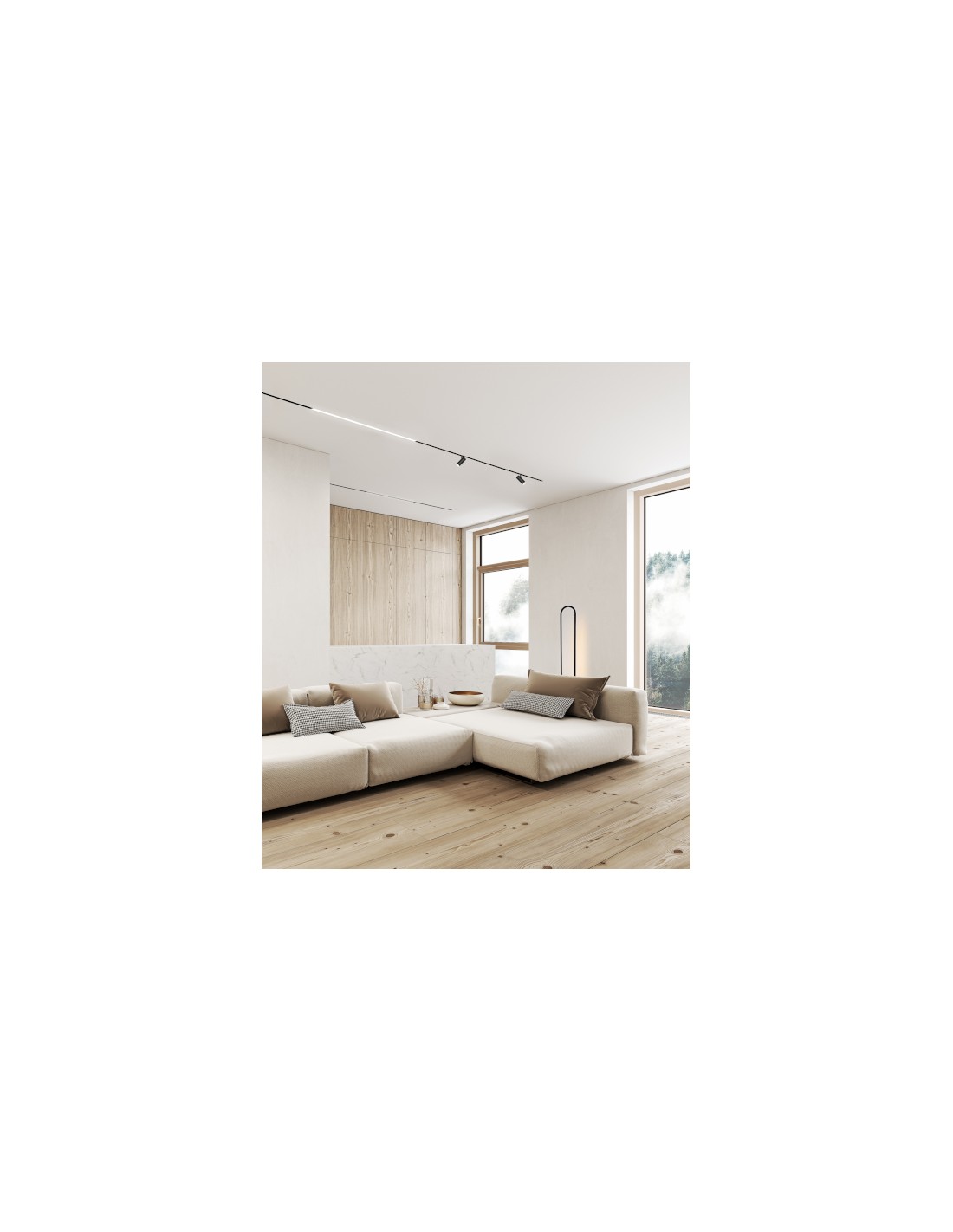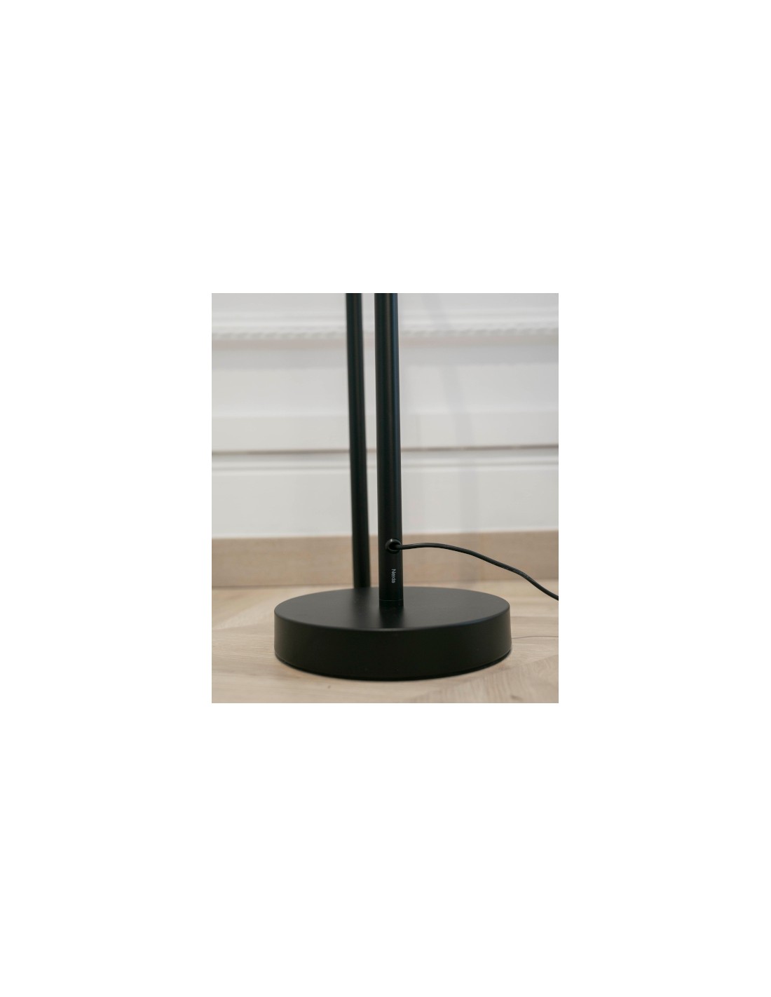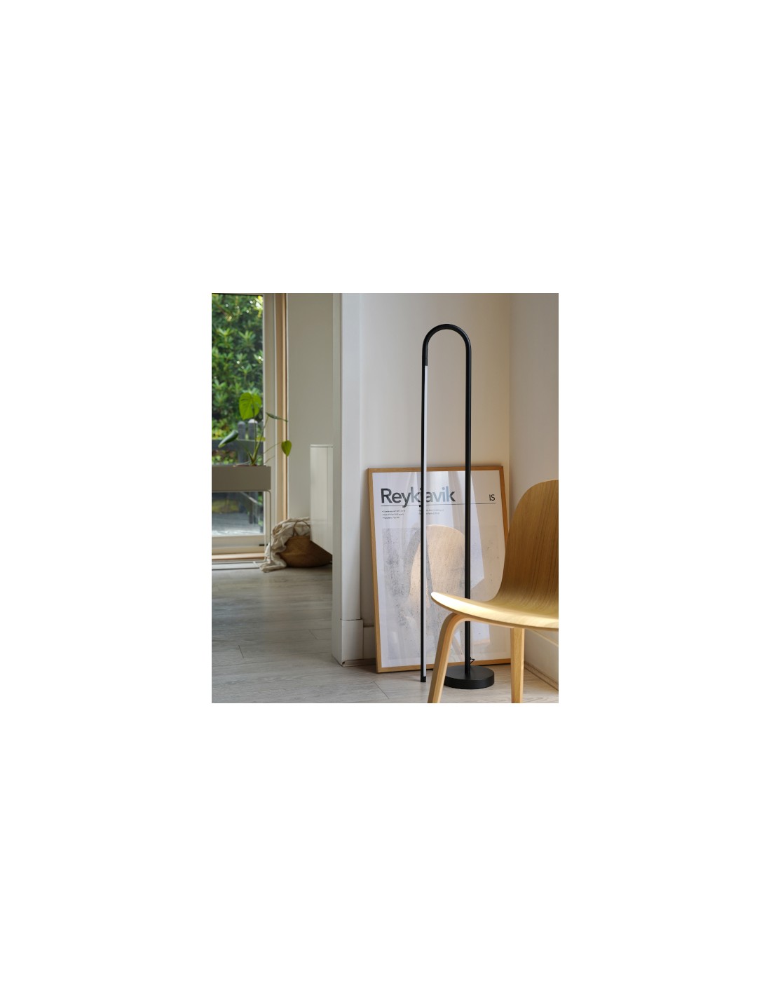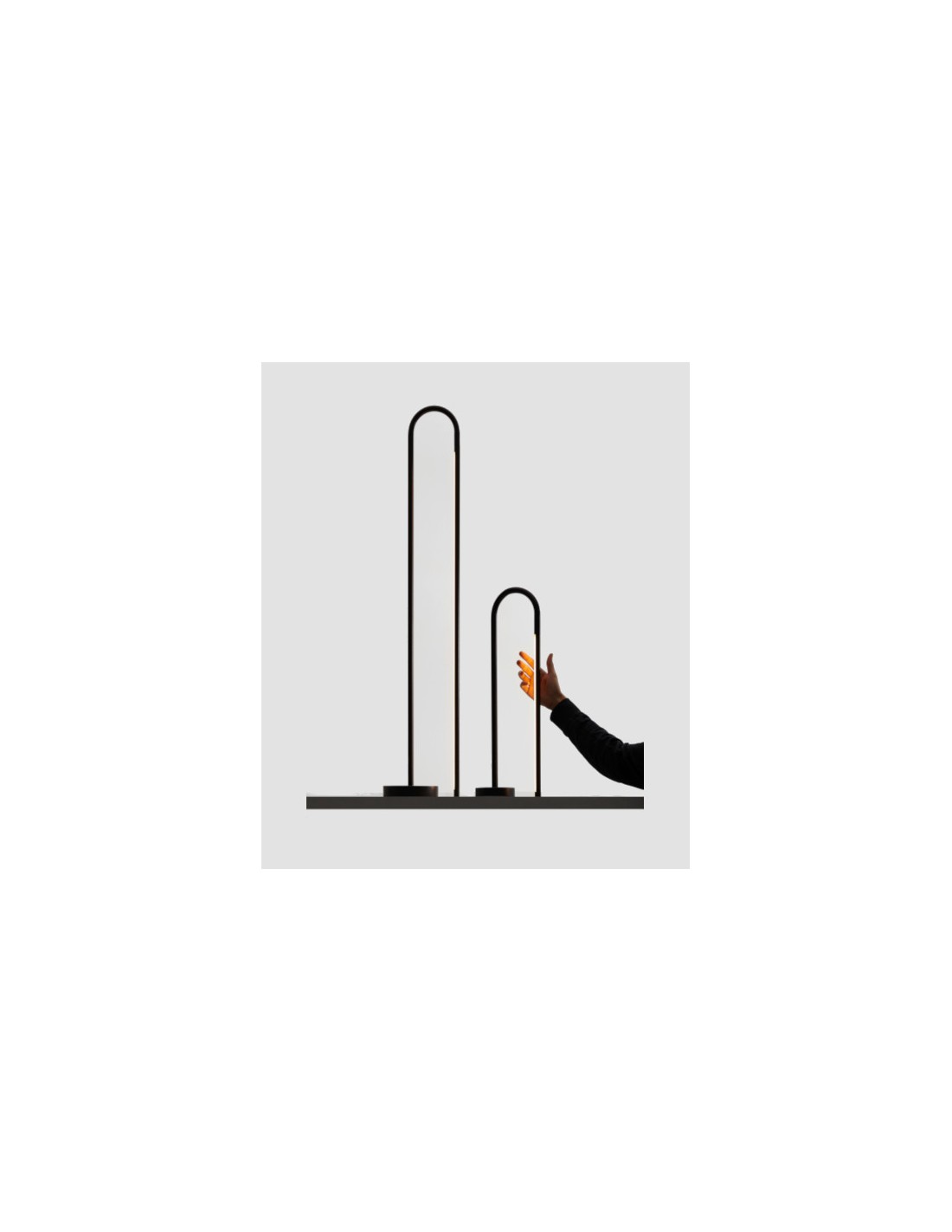 The Bow floor lamp is designed to create a distinctive lighting effect through backlighting, offering soft ambient illumination. It features a minimalist aesthetic with a curved aluminium structure in a black finish, in which one of its sections acts as a linear shade. This shade can be easily adjusted, allowing the light to be directed toward the wall or angled to create different atmospheres.