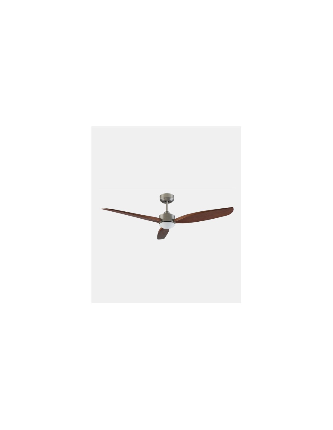 With walnut brown blades and satin nickel on the structure, Embat is a fan with light thanks to the LED light source that is incorporated in the device. Its characteristics are: LED 19,8W 1620lm 3000K (warm light).