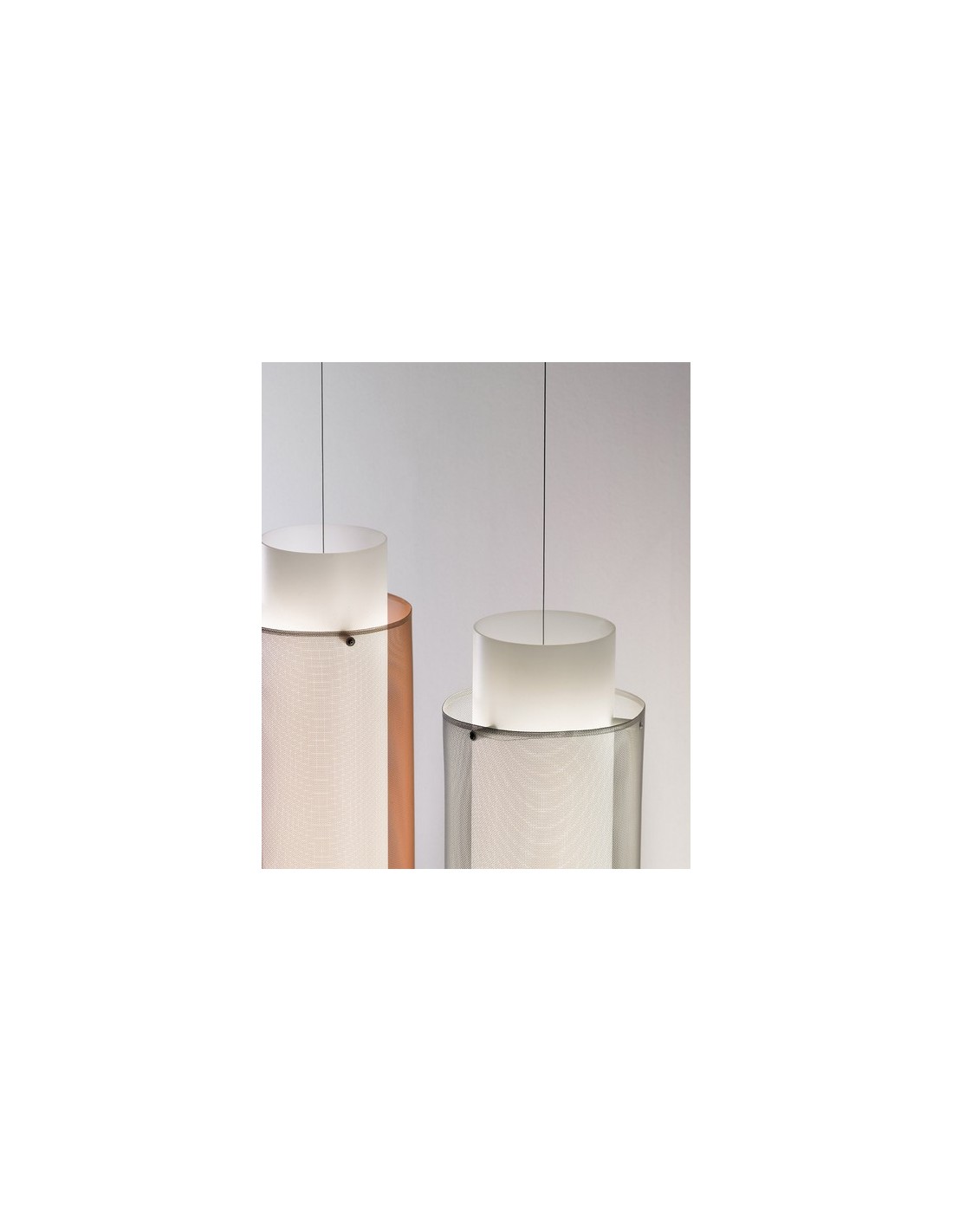 About Skin plug-in pendant light by B.lux; opal diffuser and metal mesh, 3000K, steel or bronze finishes, 130 cm or 160 cm