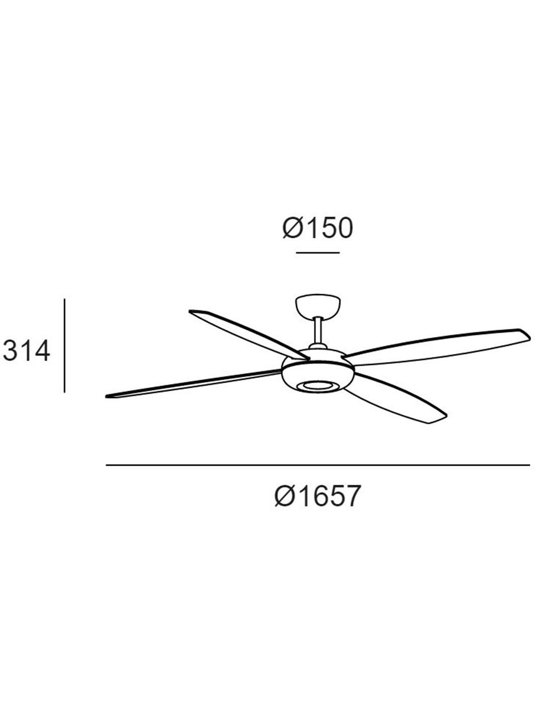 It has a diameter of 165.7 cm and a height of 31.4 cm. These dimensions make the Kudari fan a perfect product for large rooms, so it is recommended for installation in rooms with surfaces ranging from 20 m2 to 30 m2.