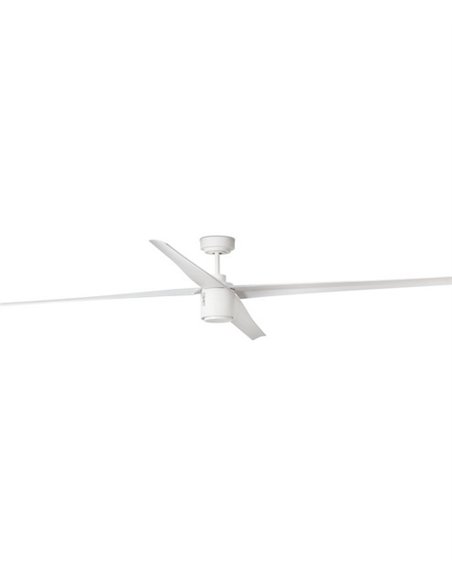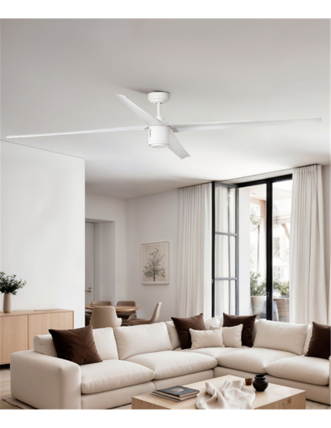 About Attos ceiling fan by Faro; ceiling fan with dimmable LED light, ultra-silent, 5 speeds, white finish, suitable for large rooms, reverse function, remote control included