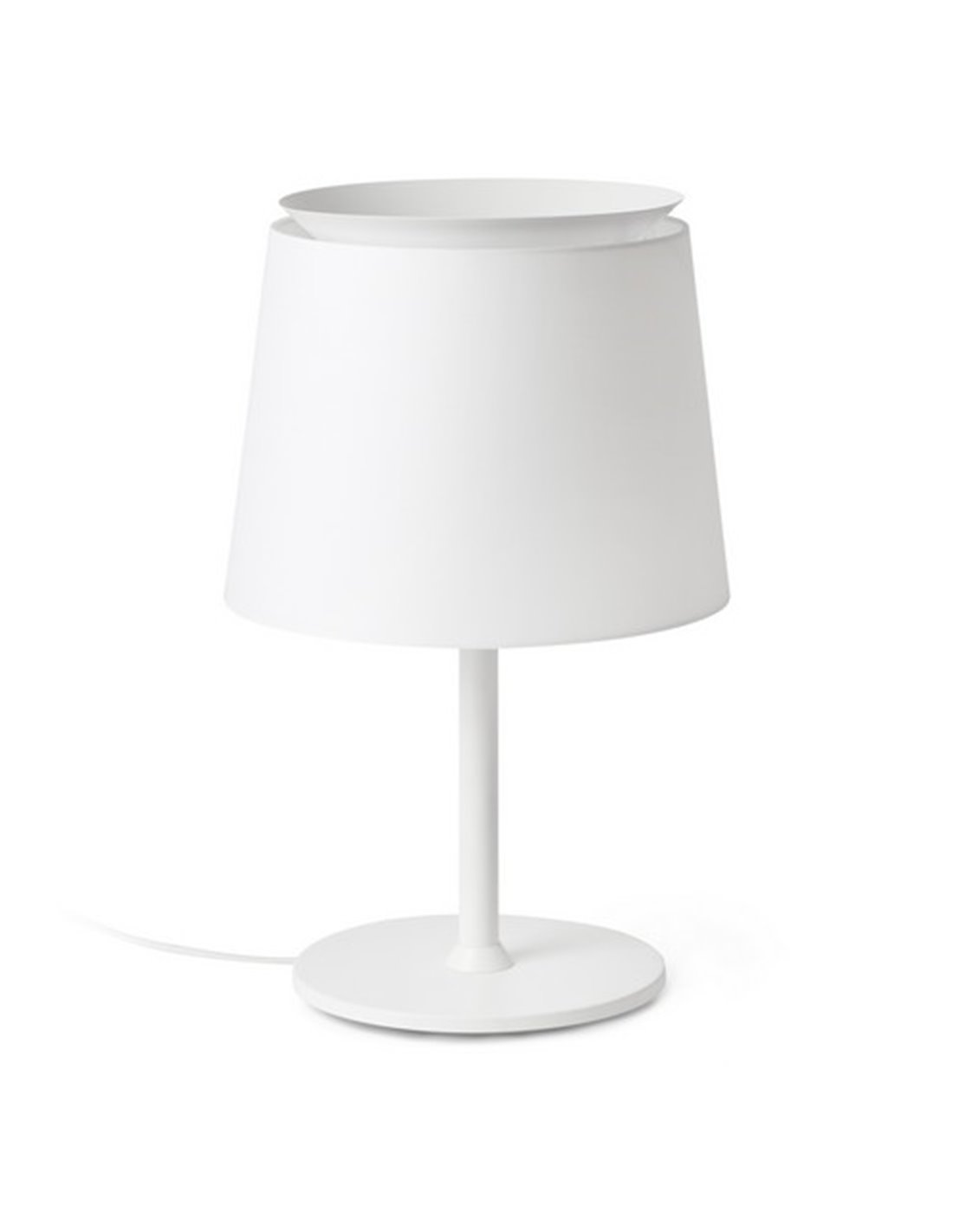 About Savoy table lamp by Faro; textile shade, 1xE27 LED, On/Off switch, 2 m cable, available in 3 finishes