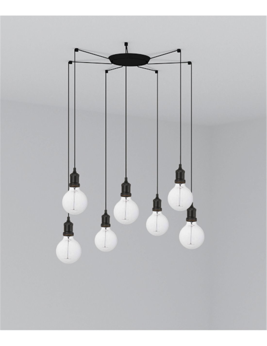 Bulbs are not included, but decorative vintage bulbs are recommended as they are exposed and play a key role in the aesthetics of the lamp. Requires 7 E27 bulbs of maximum 15W.