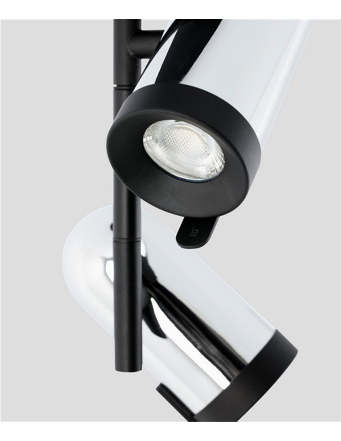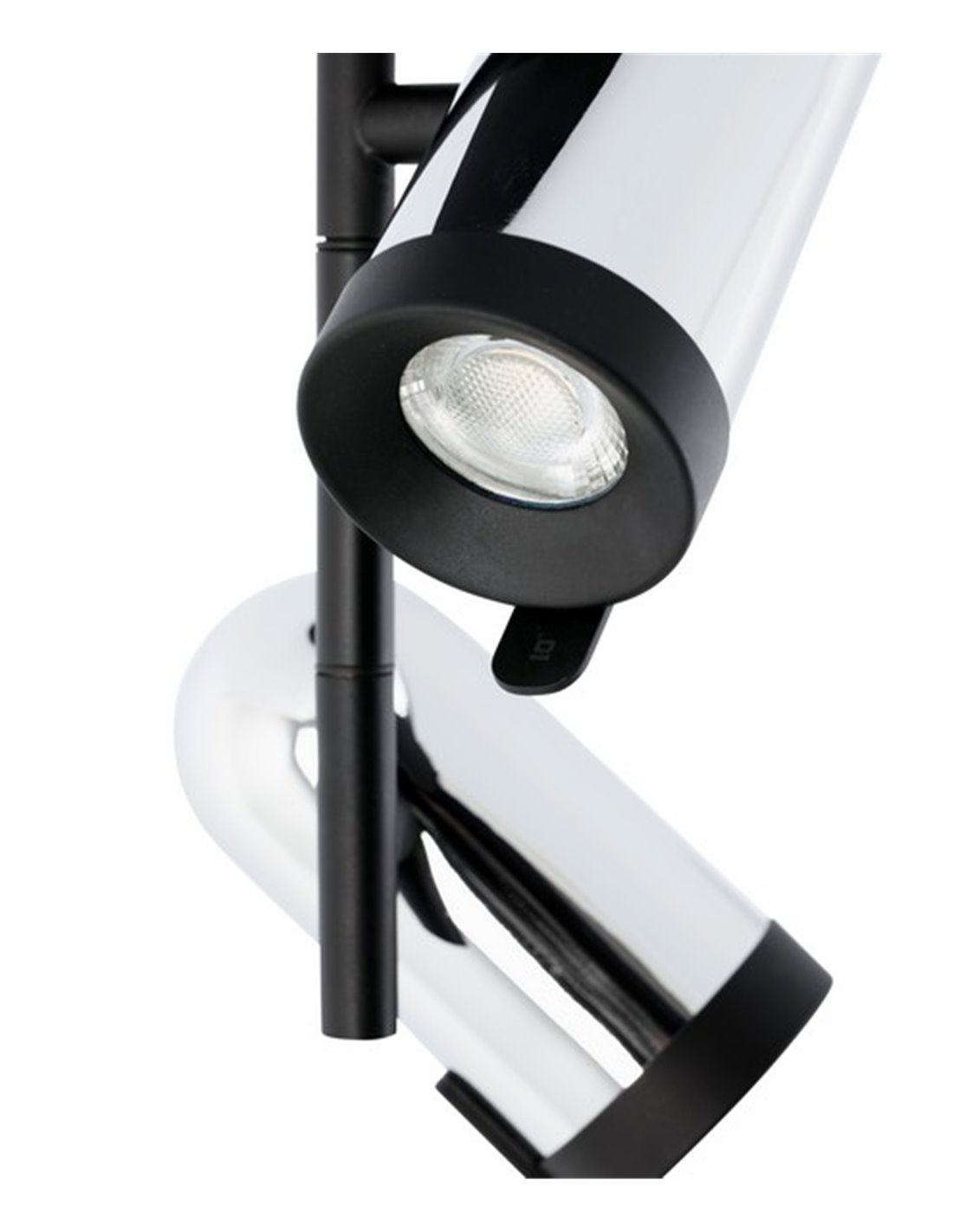The Orleans ceiling light by Nahtrang, in a two-light version, features a modern design where the visual connection between the chrome-plated spotlights and the matte black structure stands out. Thanks to its double adjustable spotlight (with 90º tilt and 355º rotation), it allows the light to be directed precisely—a very useful feature for highlighting decorative elements, creating atmospheres, or illuminating specific areas of the home.