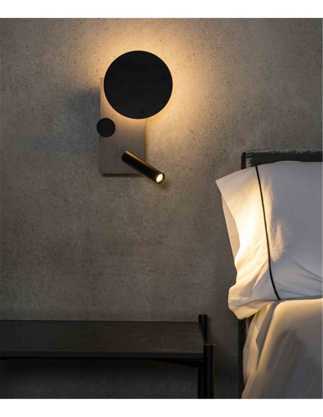 To achieve symmetrical bedside lighting, there is also a version with the reading light on the right, ideal if you want to install the same lamp on both sides of the bed.