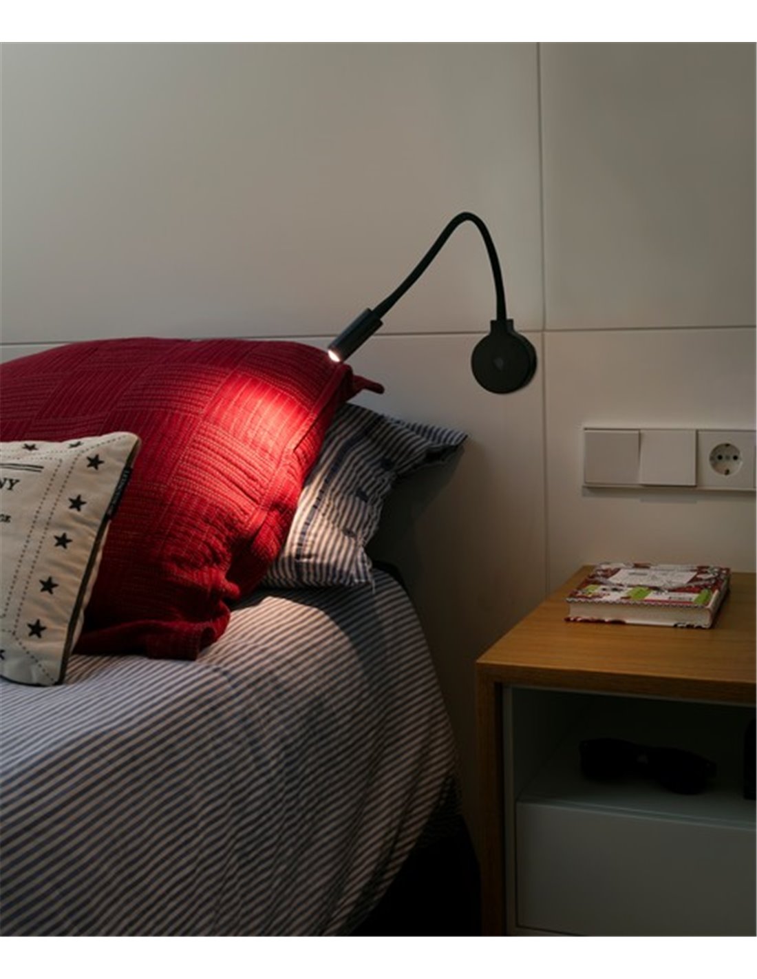 About Pixie wall reading light by Faro; adjustable reading light, white or black, touch switch, LED 2700K