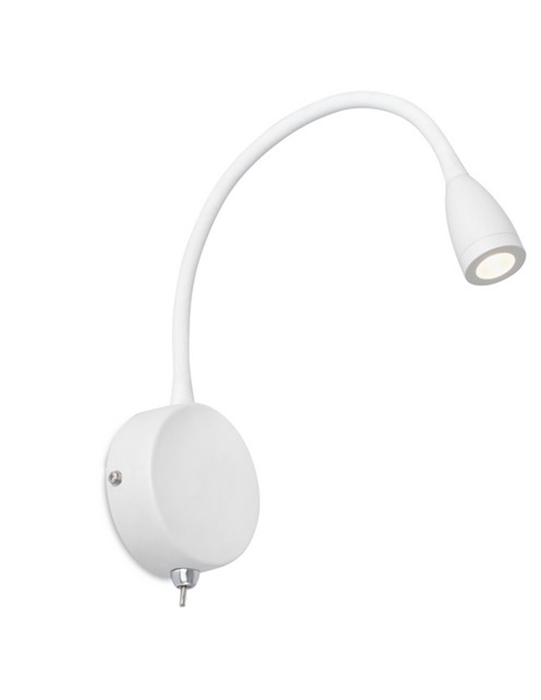 This wall-mounted light with an adjustable arm is a practical solution for illuminating reading areas in bedrooms or living rooms. Its simple, modern design is available in several finishes: chrome, white, or black.