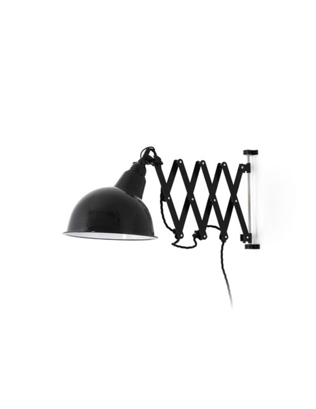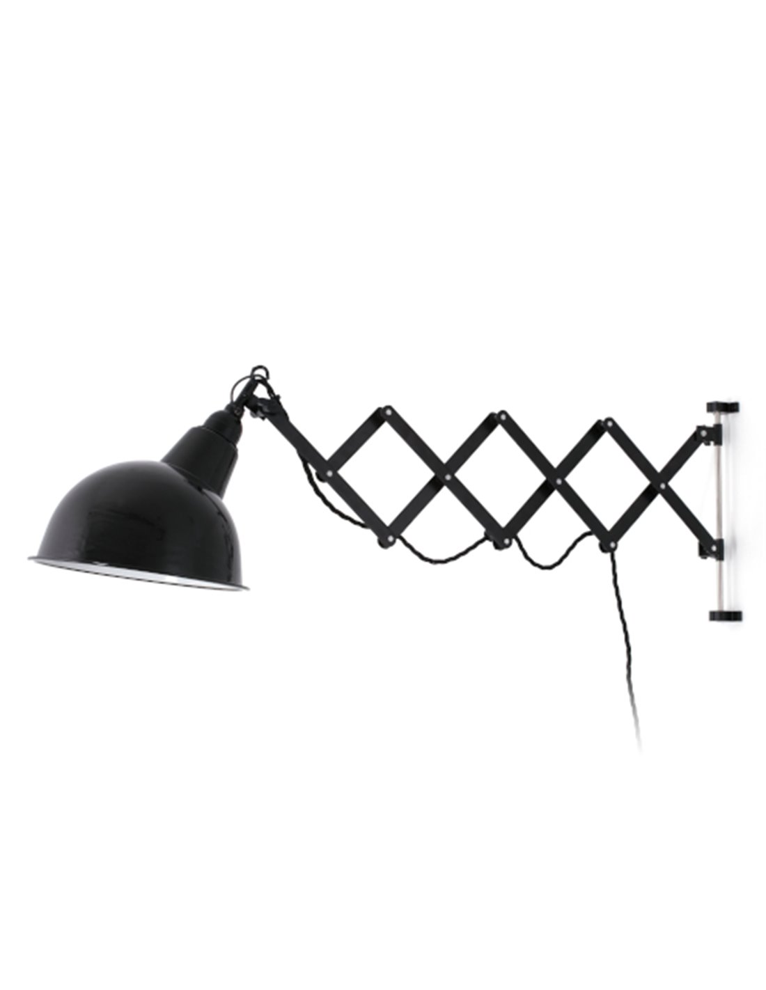 This extendable retro-style wall light is made of metal with a steel structure in a glossy black finish, bringing an authentic industrial touch to any room.
