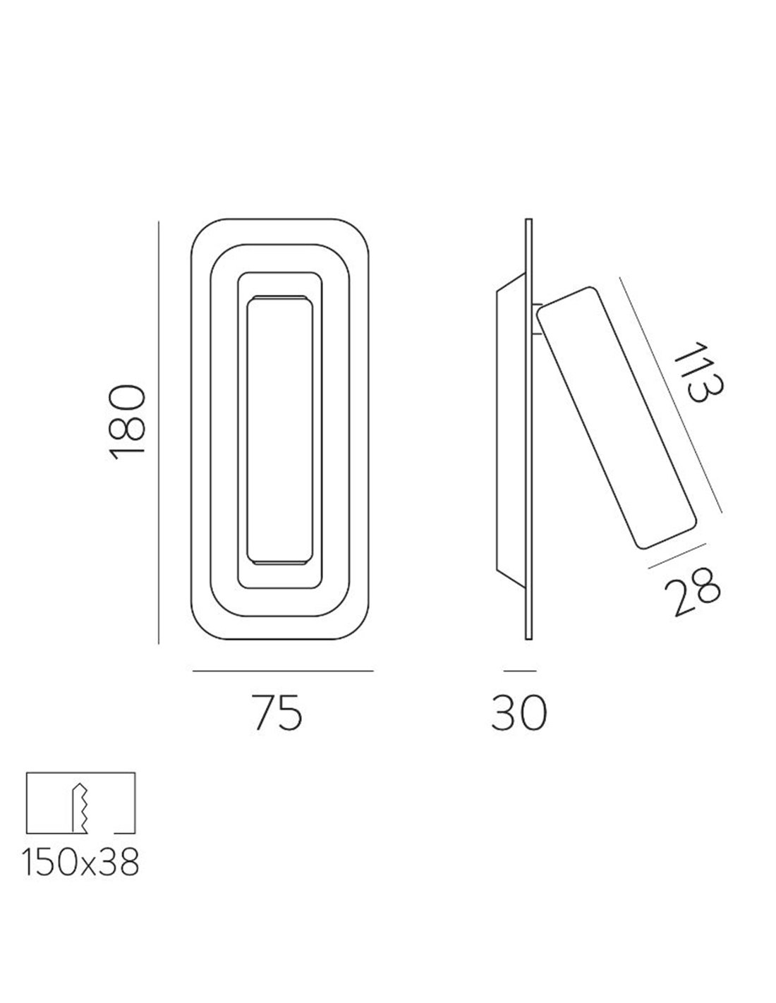 This wall light is installed inside the wall and requires a 15×3.8 cm cut-out.