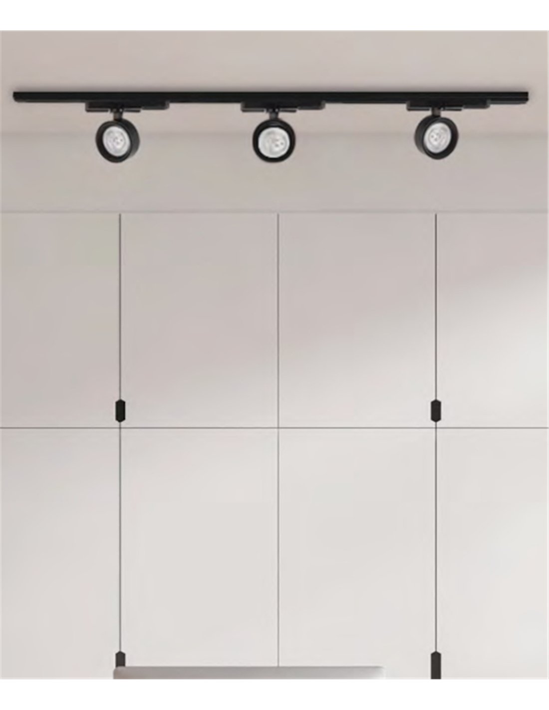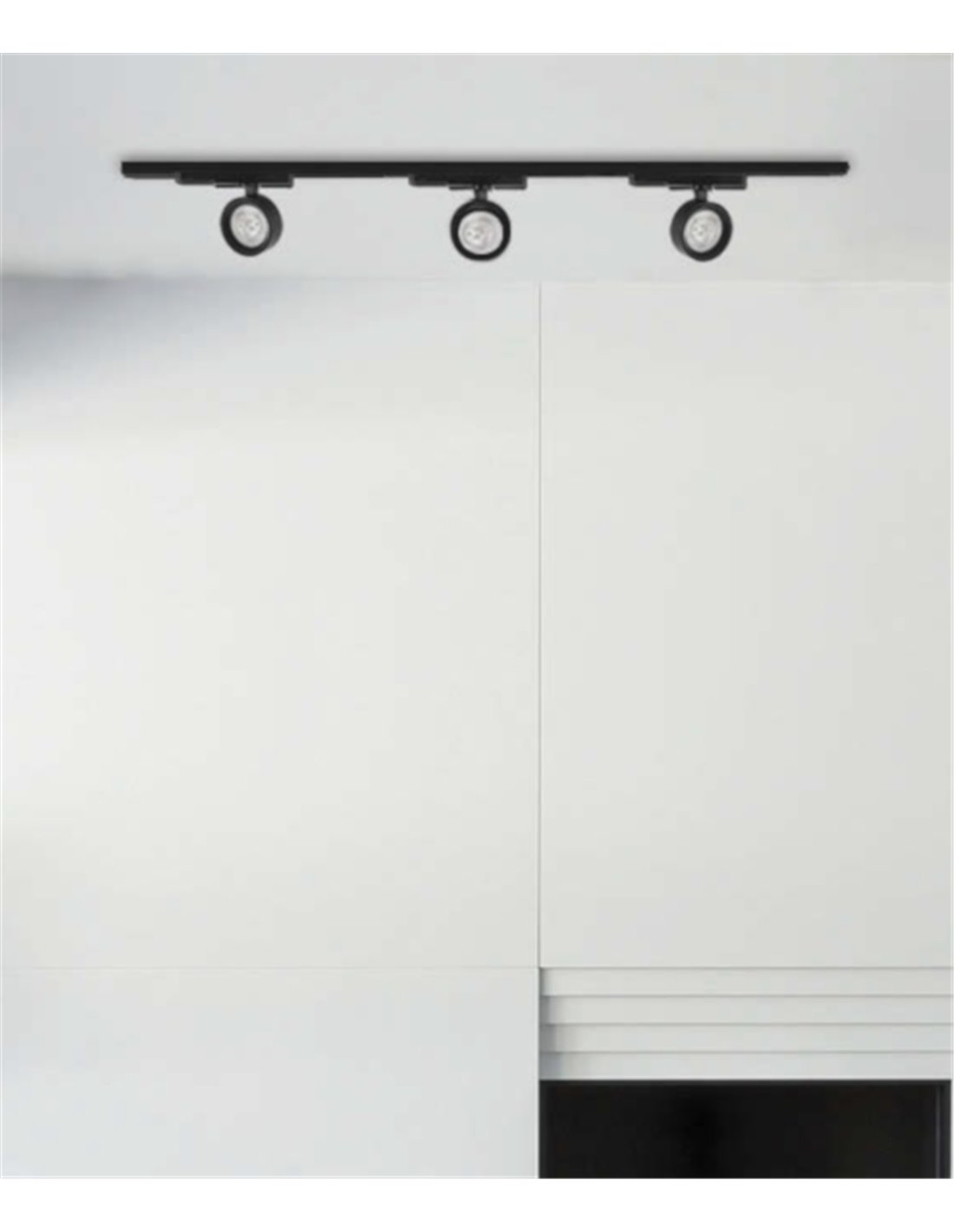 About Mako three-phase track spotlight by ACB Lighting; LED 3000K, in white or black, adjustable