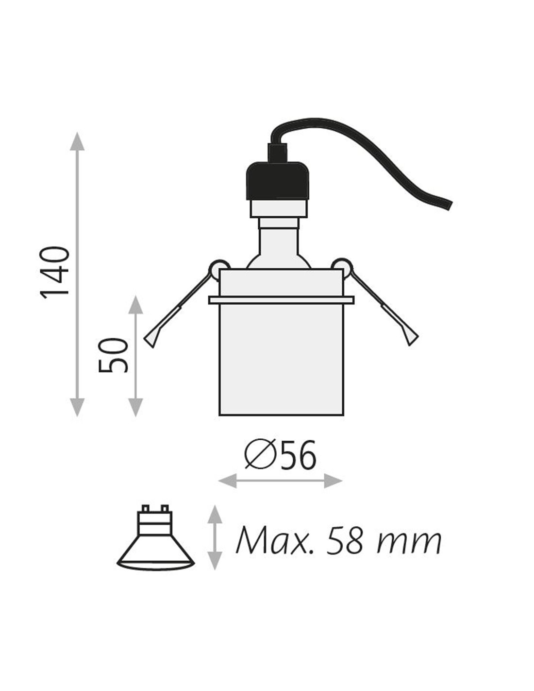 It uses a GU10 LED bulb (not included), with a recommended maximum power of 8W. Brightness and colour temperature will depend on the chosen bulb, making it easy to tailor the lighting to each space—warm light for more inviting settings or neutral light for circulation areas.