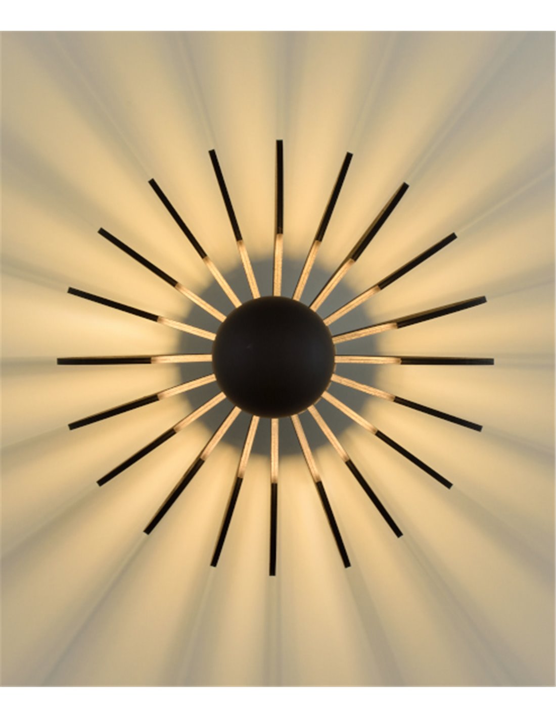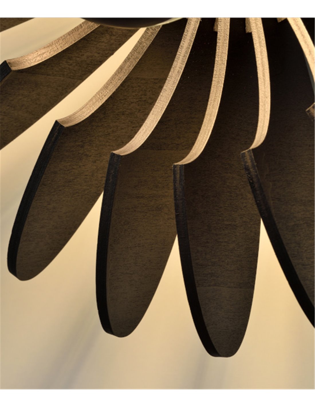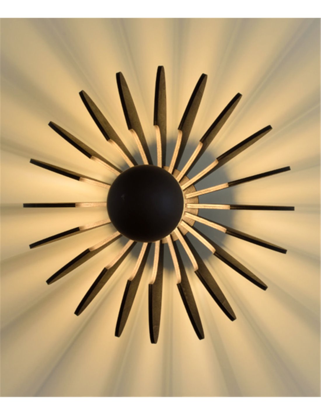 About Rosa del Desierto wall light by ACB Lighting; wooden structure, nature-inspired lamp, black finish