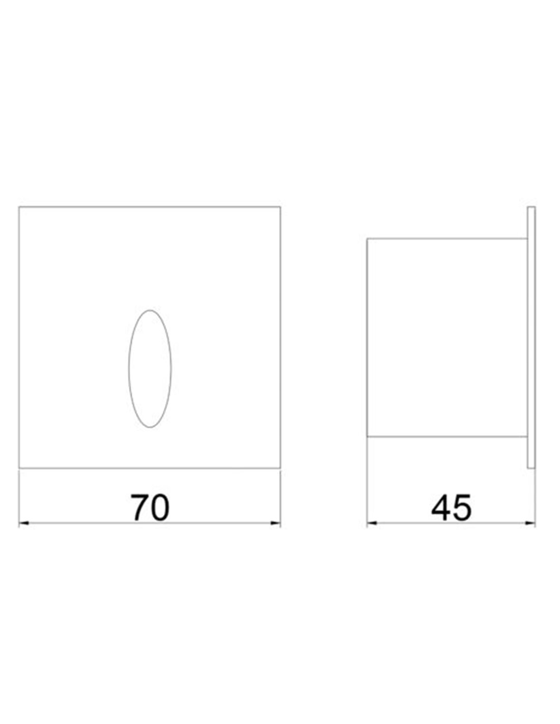 The product’s dimensions are 70 mm x 70 mm for the frame, with a recessed depth of 11.2 cm.