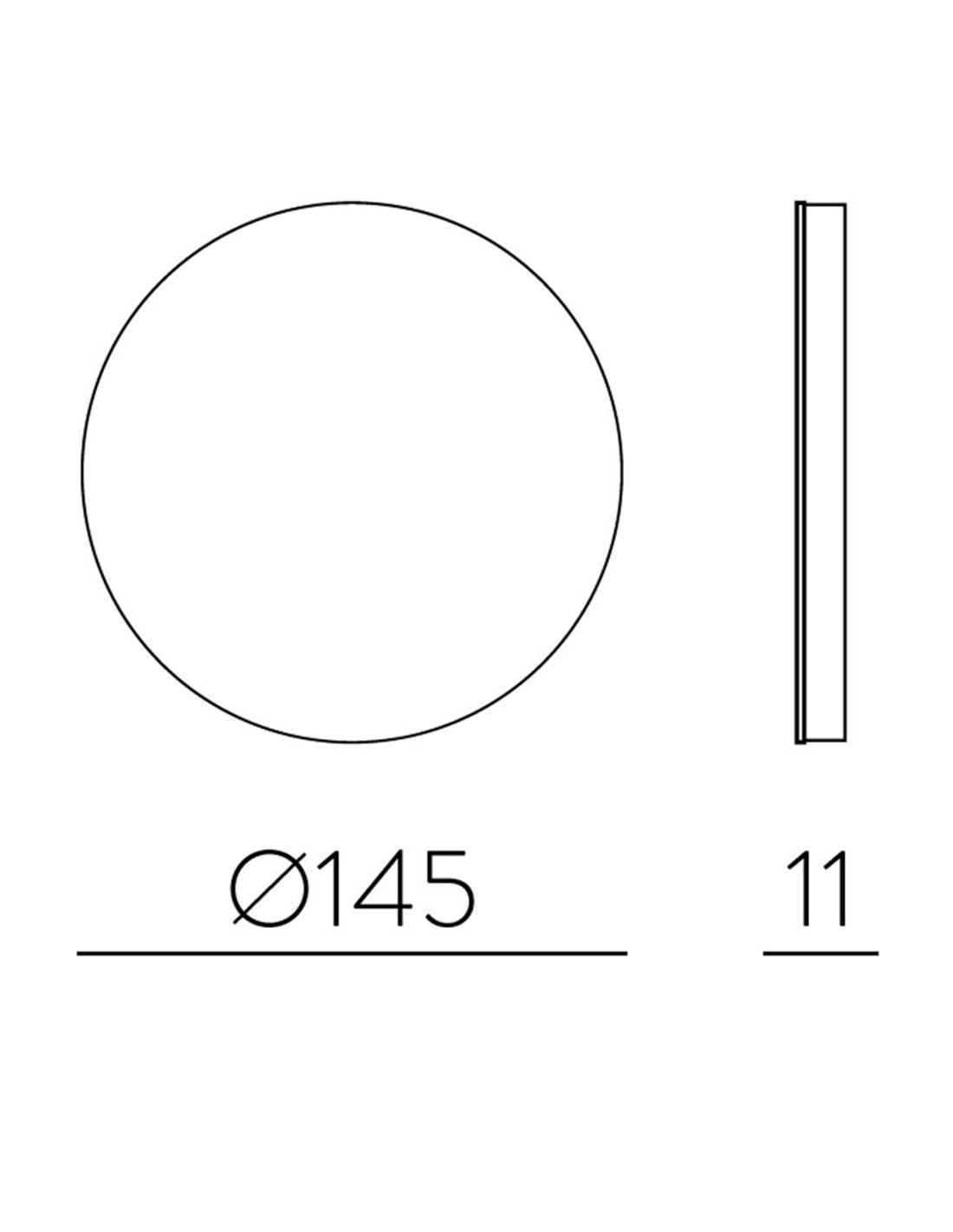 The Chameleon wall lamp, with a diameter of 15 cm, is composed of two discs: a metal base in a golden finish that integrates the LED light source, and a decorative disc made of an acoustic panel, produced with 60% recycled PET bottles and 40% new PET.