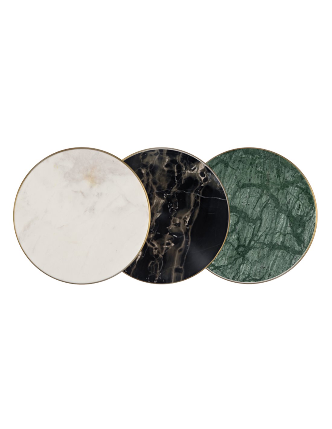 The Chameleon wall lamp stands out for its two-disc structure: a metal base in a golden finish that integrates the LED light source, and a decorative disc made of natural marble, available in three elegant colors: white, black, and green.