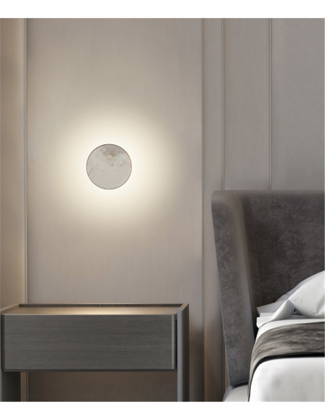 About Chameleon wall light by ACB Lighting; minimalist design with golden base and marble disc, Ø15 cm, LED 7.5W 3000K