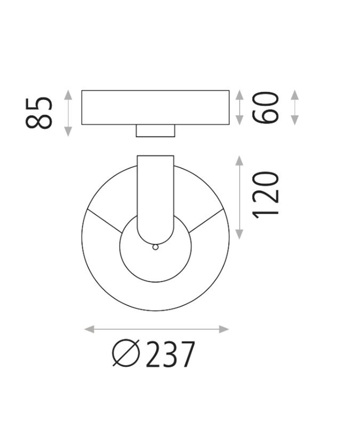 The Gloss wall sconce is a piece that combines elegance and efficiency. This device, with a diameter of 23.7 cm and a support of 8.5 cm, is a versatile solution for outdoor lighting that adapts perfectly to a variety of outdoor spaces.