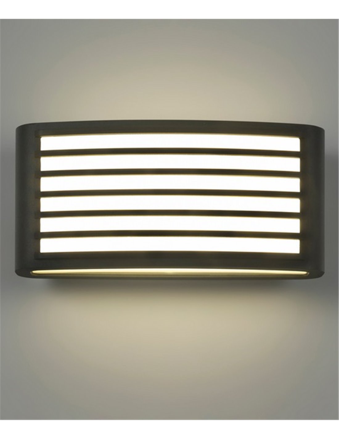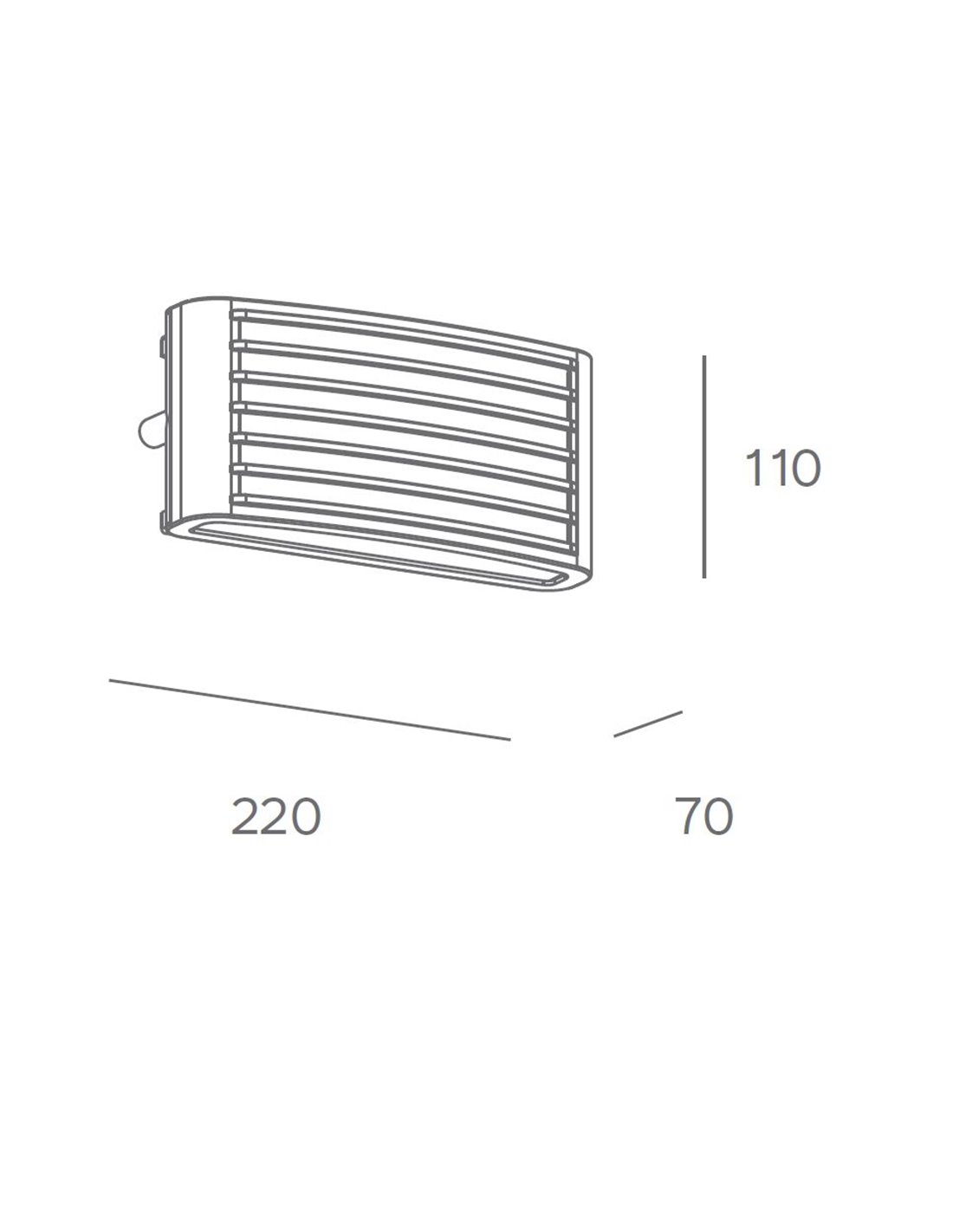 This 22 cm long outdoor wall light is intended for surface installation on facades, balconies or terraces. It is a 12W LED lamp that emits a warm 3000K light, ideal for creating cosy atmospheres and emits a luminous flux of 1300 lumens.