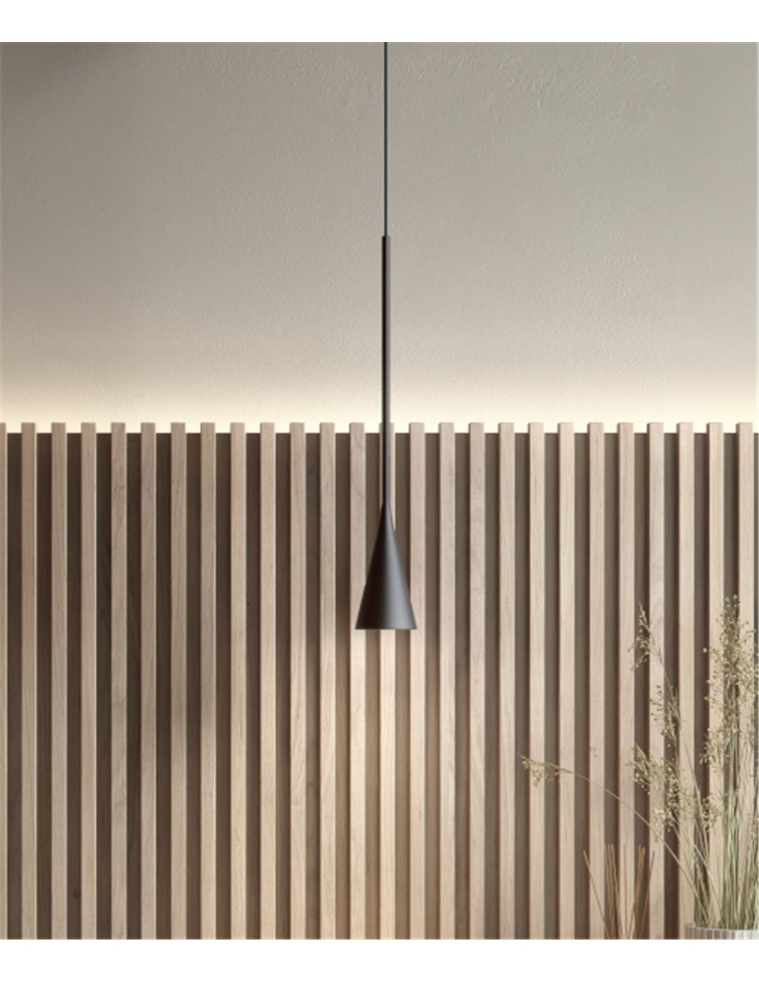 The Skybell was born as a wide system of light structures designed to adapt to any type of application. Their main characteristic is the image they give off: they are subtle and cheerful. The Skybell Plus takes up this subtlety and joy, and reduces the concept of the lamp to its essence: the bell. A very simple, dark, black object that does not want to be the center of attention. This simplicity is precisely what gives the product great versatility. It is an exercise in synthetic and precise design, where the function determines the form with an elegant and discreet result. The Skybell, the bell, is a very simple and understandable object, a light that comes from above. It is a black bell that symbolizes a cut out of the darkness, as if we had taken the darkness and cut it out, and how from the darkness, light comes out. Its simplicity is what allows us to play with it so much.