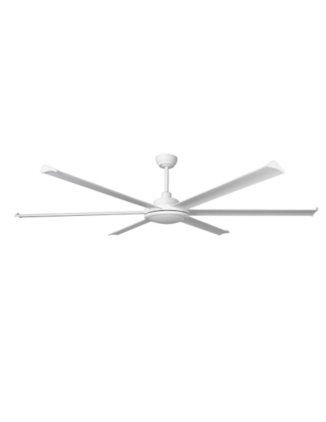 This version of the Rotterdam ceiling fan, with integrated light and made of white steel, is designed for large industrial and commercial spaces, from 39 m², such as warehouses, gyms or shopping centers. It is characterized by its 200 cm diameter and six aluminum blades, whose power provides powerful and uniform ventilation in large areas.