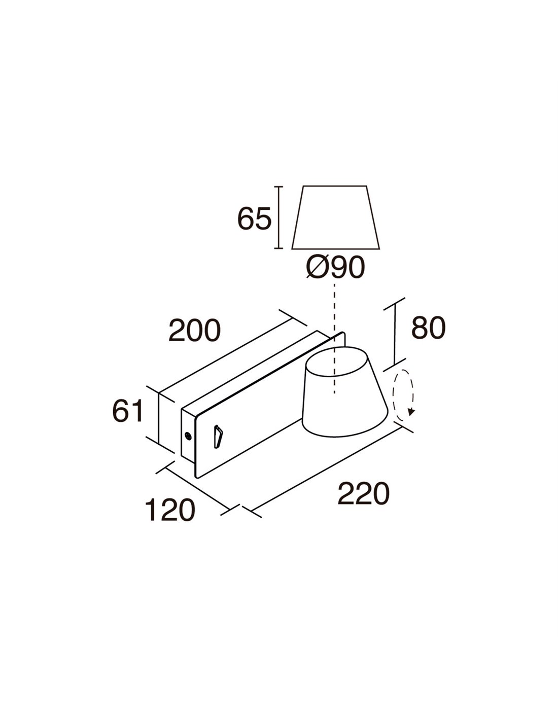 The luminaire is equipped with a 6W SMD LED light source, delivering 732 lumens with a warm 3000K color temperature. A front on/off button ensures simple and direct operation.