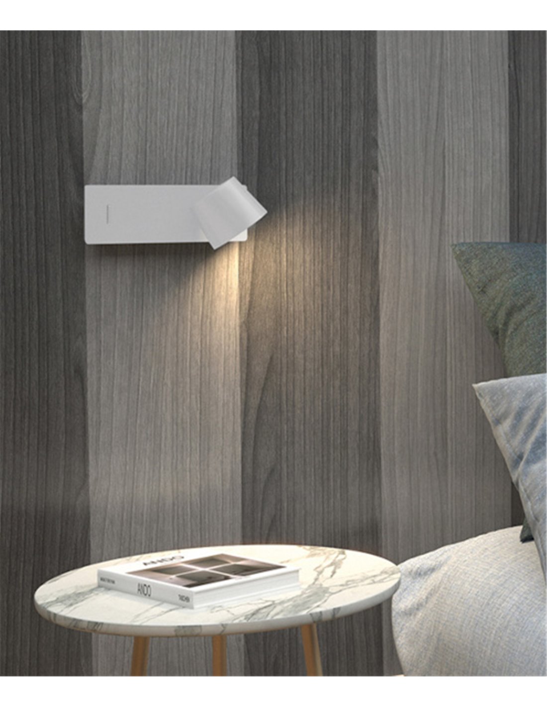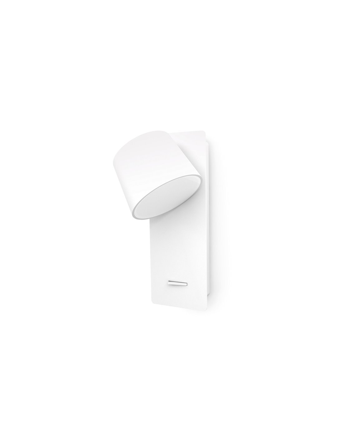 The Serene wall light, designed to illuminate headboards and resting areas, is made of steel and available in white or black finishes. It features a 350° adjustable head that allows the light to be directed to the left or right. Integrated USB type A and C ports on the body of the fixture provide convenient and accessible charging for electronic devices.