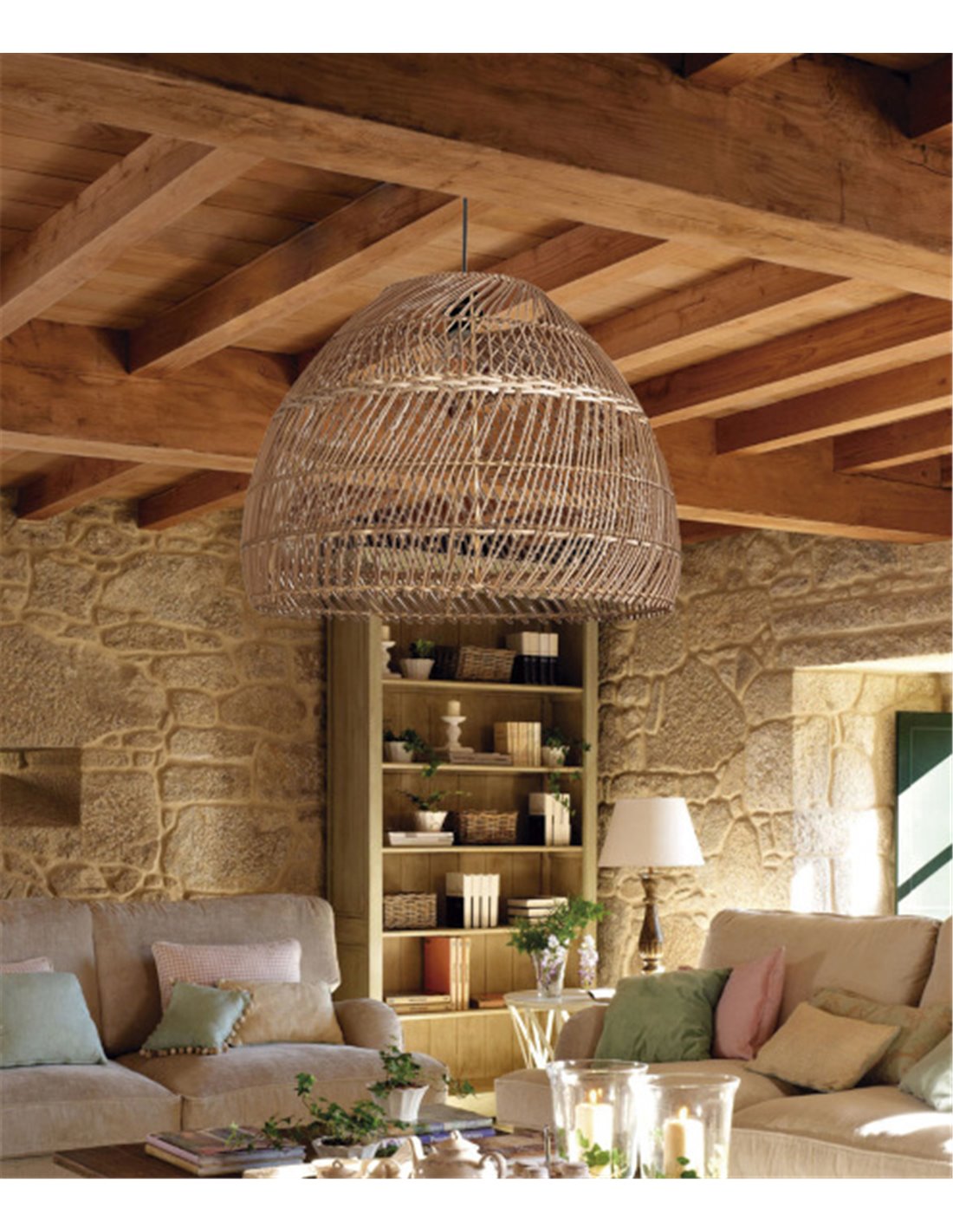 Vietnam is an indoor pendant light with a boho chic design inspired by traditional craftsmanship. Made of natural wicker, it brings a warm and relaxed aesthetic—ideal for creating authentic atmospheres in living rooms, dining areas, or bedrooms with a natural or contemporary style.