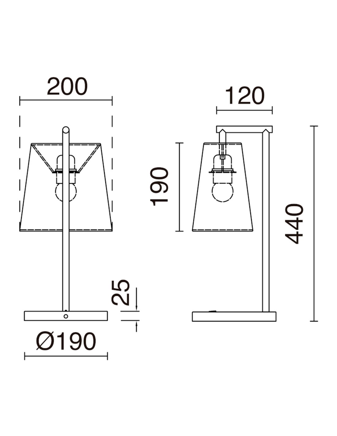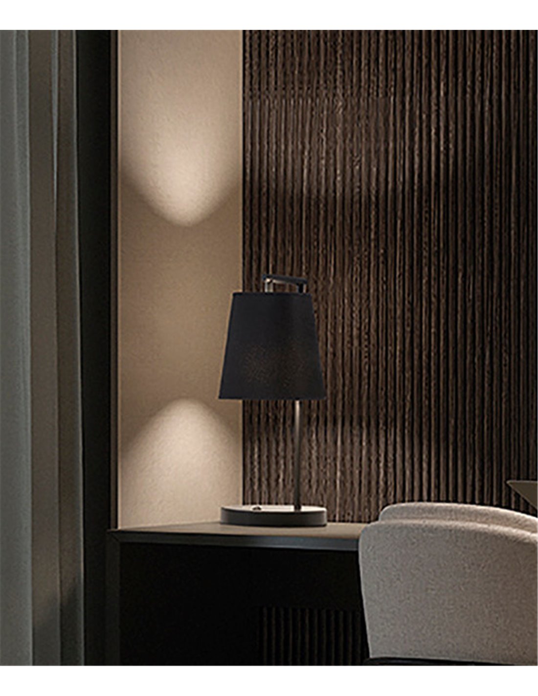 It includes an E27 socket, compatible with LED bulbs up to 40W (not included). Its design makes it especially practical as a bedside lamp or as an auxiliary light source on side tables, desks, or consoles.