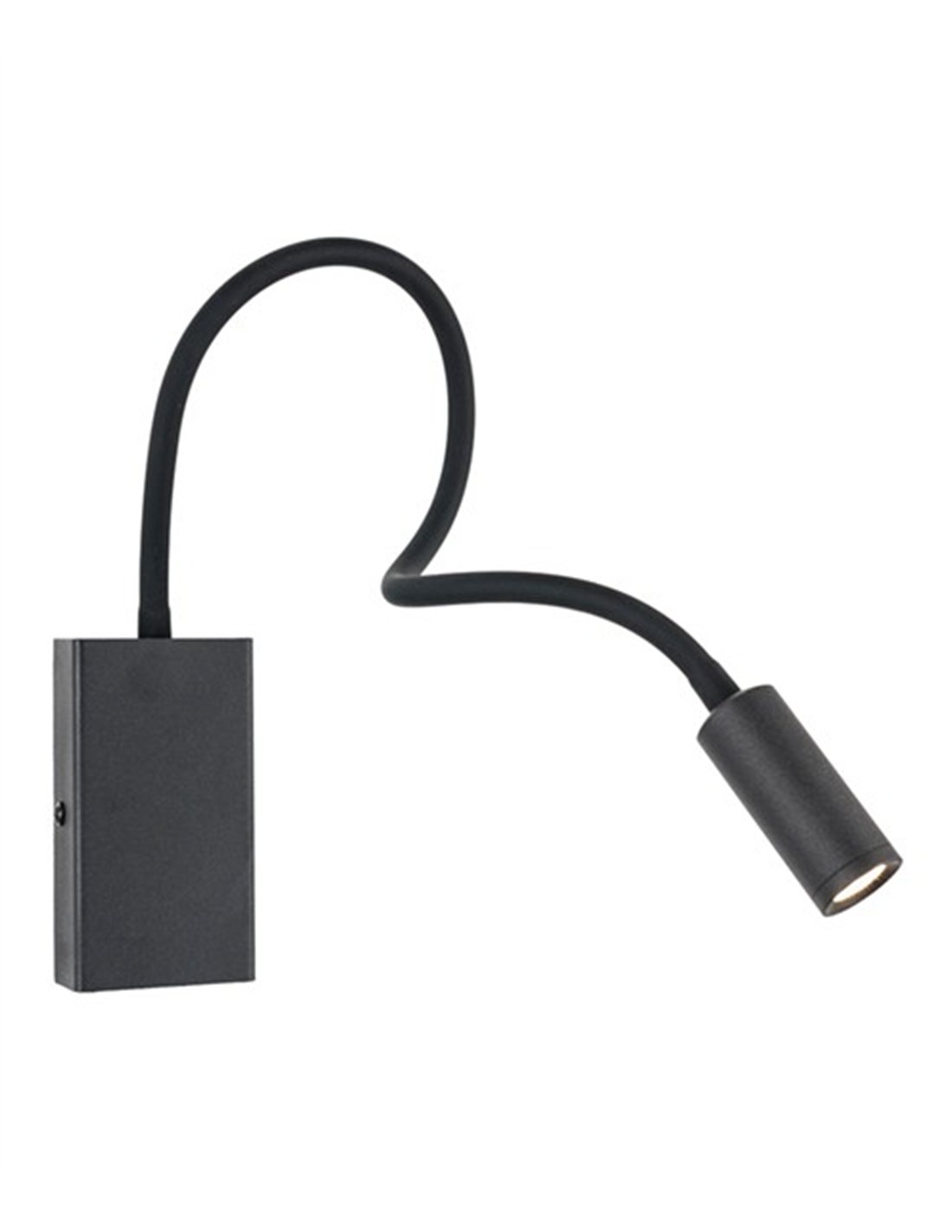 LED reading wall light model CRETA, available in sand white or black finish. It offers a power of 3 W, a colour temperature of 3000 K (warm light), a luminous flux of 130 lm, and a 30° beam angle.