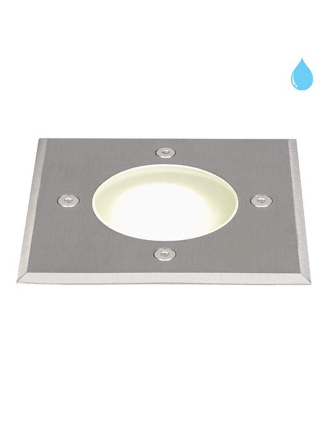 Square recessed ground spotlight model CRACOV in aluminium finish. Features IP67 protection and IK10 impact resistance.