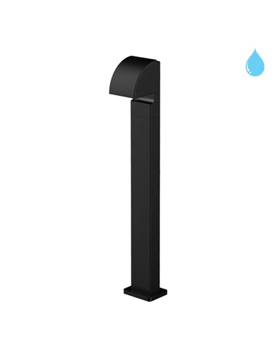 Outdoor bollard lamp with one light. LED light source 5W, 4000K. Structure in black finish. Made of aluminium with a PC diffuser. Dimensions: 140 x 170 x 700 mm. IP44 rated.