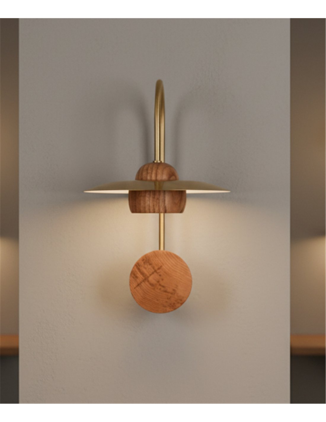 Txapela wall light - Pedret Lighting - Decorative oak wood lamp with brass disc