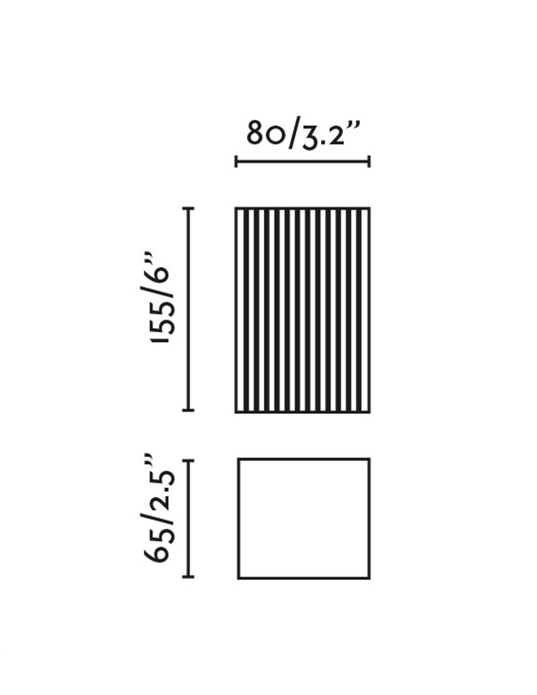 Its bidirectional lighting ensures a pleasant and even ambience, especially useful in passageways with limited space. Its dimensions are 15.5 cm in height and 6.5 cm in width.