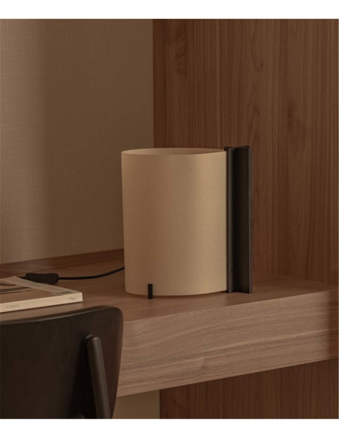 Cata is a table lamp designed by Marina Milá that stands out for its combination of a black structure with a beige papyrus shade, creating a light and timeless piece.