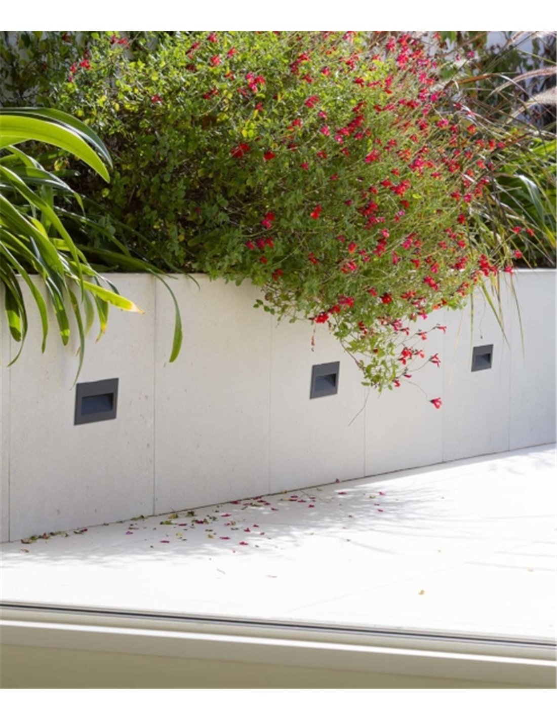Designed for outdoor use, the Mani recessed light subtly and efficiently illuminates entrances, walls and stairways. Its white and dark grey versions provide a modern and balanced appearance.