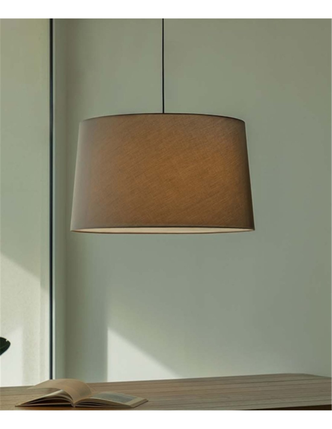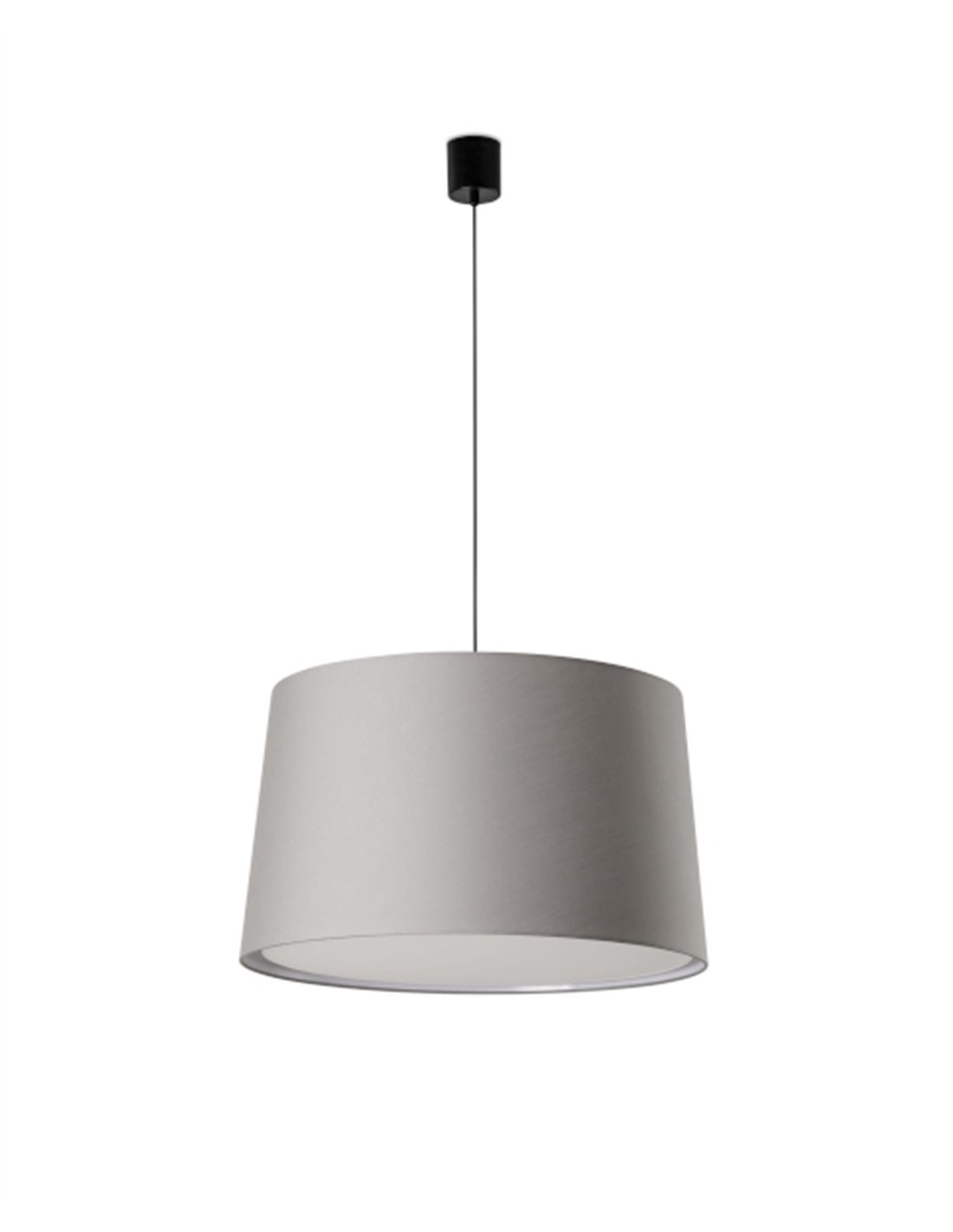 The Windsor pendant light stands out for its generous 65 cm fabric shade, which adds character and provides subtle ambient lighting. The grey shade, paired with the black structure and 150 cm cable, creates an elegant design.