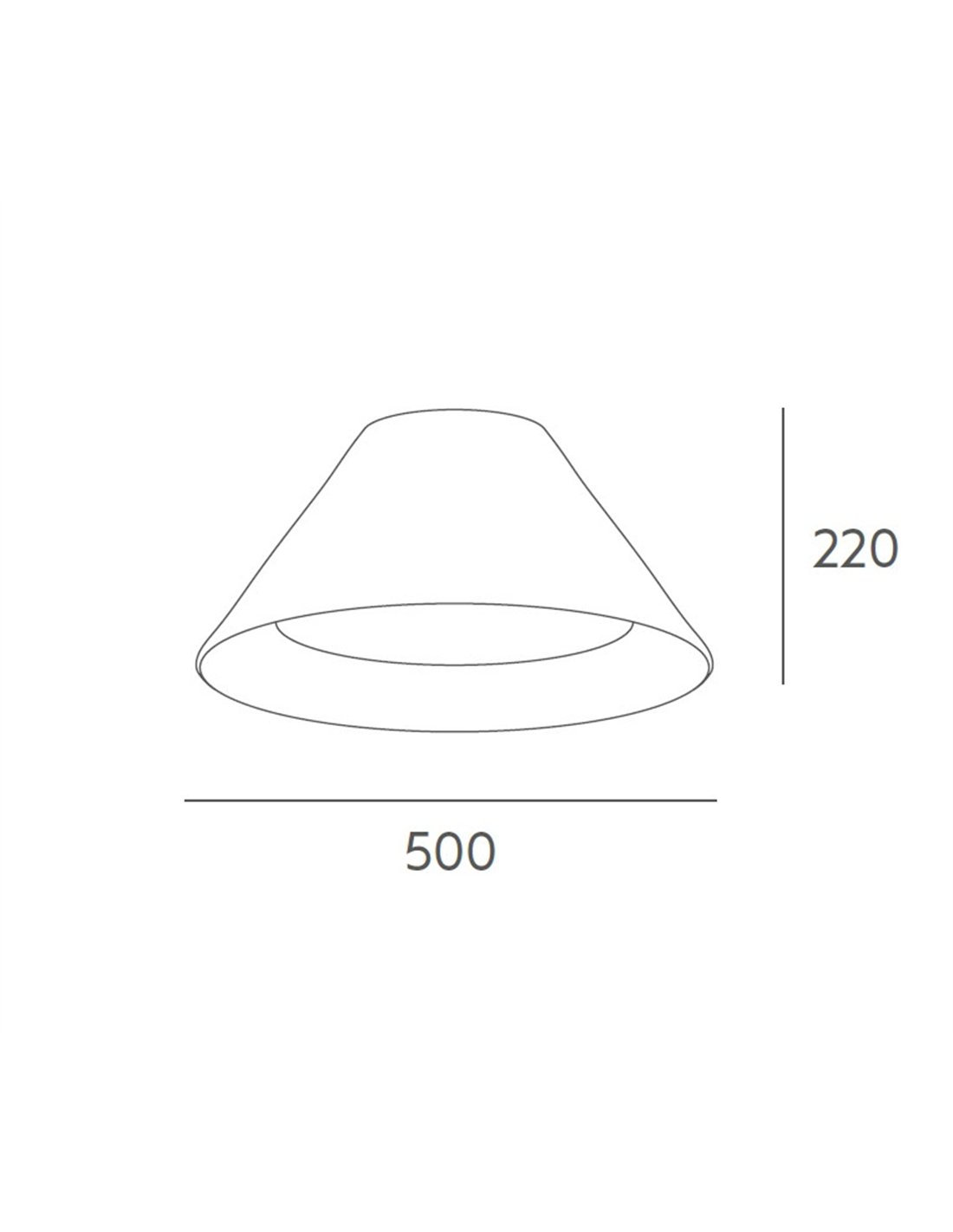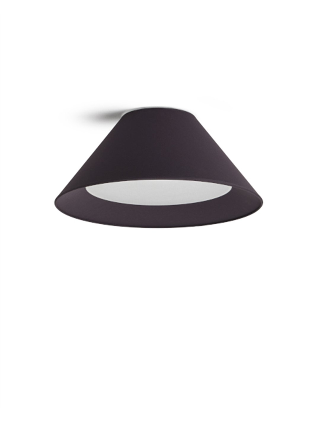 The Conic ceiling light is part of a collection shaped around a truncated cone and designed to provide general illumination. It features a translucent cotton fabric shade available in two diameters, 50 cm and 70 cm, and in two finishes: white or black. Its wide design promotes an even distribution of light, making it suitable for frequently used spaces such as dining rooms, entrance halls, corridors or any room in the home.