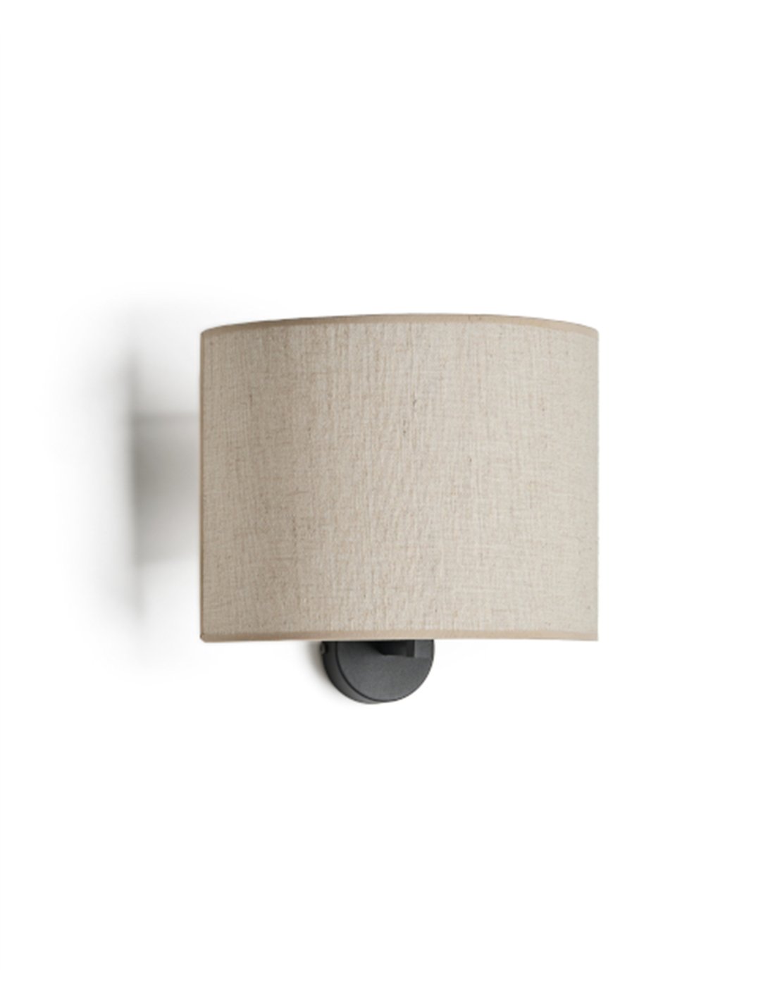 About Sorrento wall light by Massmi; 40 cm natural linen shade, black iron structure, 1×E27 11W LED
