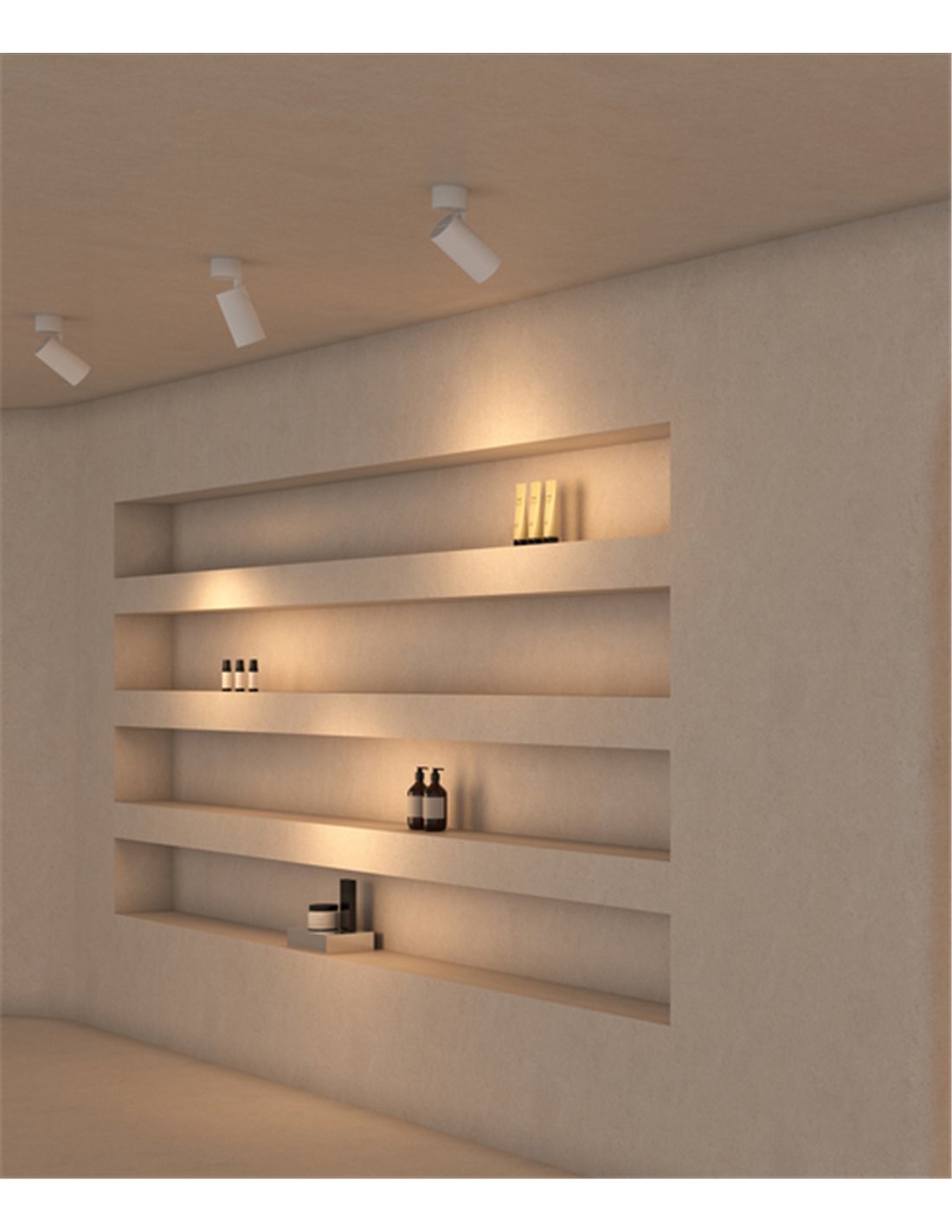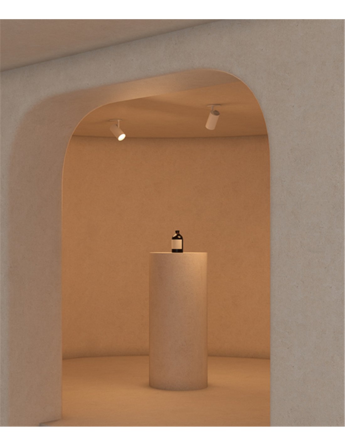 Sutil is an indoor spotlight with simple, minimalist lines, featuring a design that integrates the driver into the surface-mounted base. This allows point-by-point installation without track systems or special construction work, achieving a clean ceiling finish. It is available in white or black.