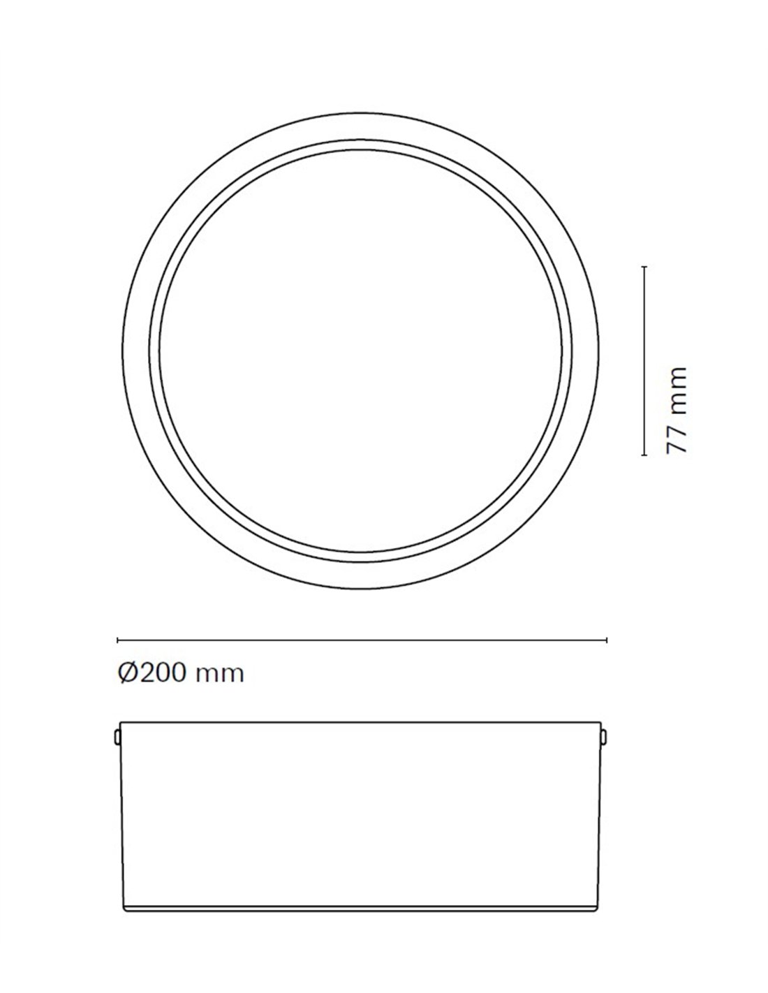Hol has a diameter of 20 cm and is installed directly onto the ceiling surface. It is available in white or black. Its integrated LED light source delivers 21W and 2,900 lumens—high output for its size—making it suitable as the main lighting source in rooms of 10 to 20 m² (wide corridors, kitchens, bathrooms, utility rooms, porches or entrance areas). In larger spaces, installing more than one unit is recommended to ensure uniform lighting.