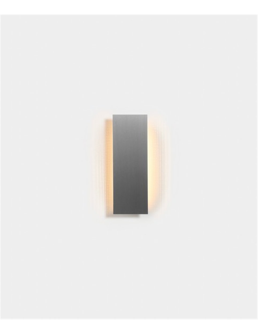 Umbra is a wall-mounted luminaire with straight lines and a slim profile, manufactured in satin stainless steel. Its aesthetic is minimalist and architectural: a rectangular body that projects light onto the wall, creating a soft and homogeneous lateral halo.