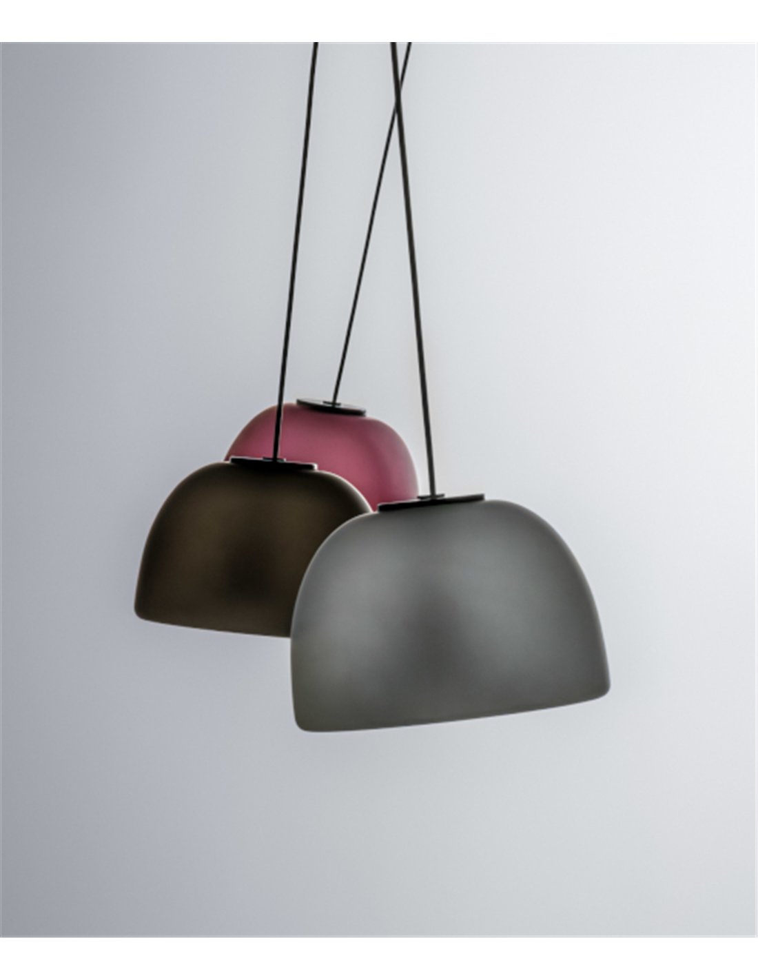 About Veiga pendant light by a-emotional light; semi-oval coloured glass shade, LED 4W 350 lm, warm light 2700K, 150 cm cable, 4 finishes